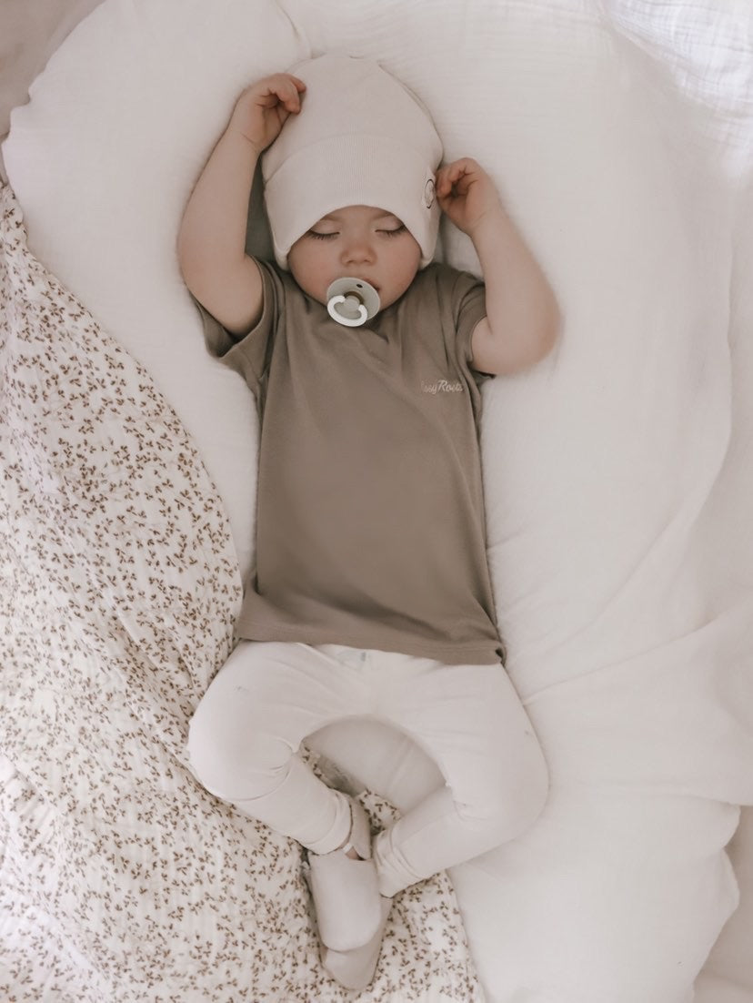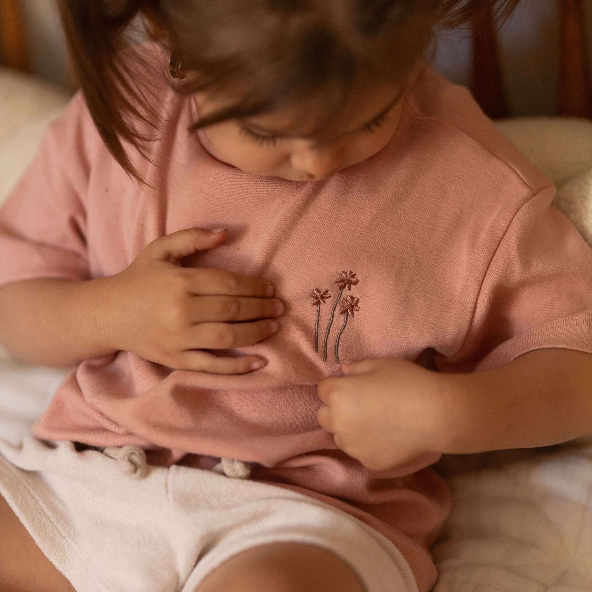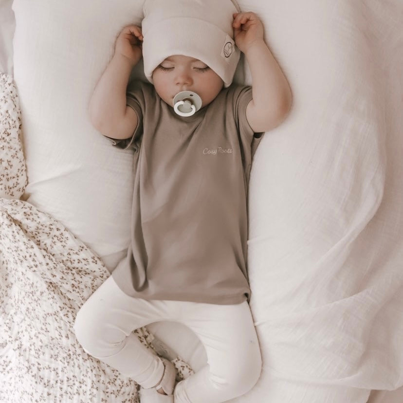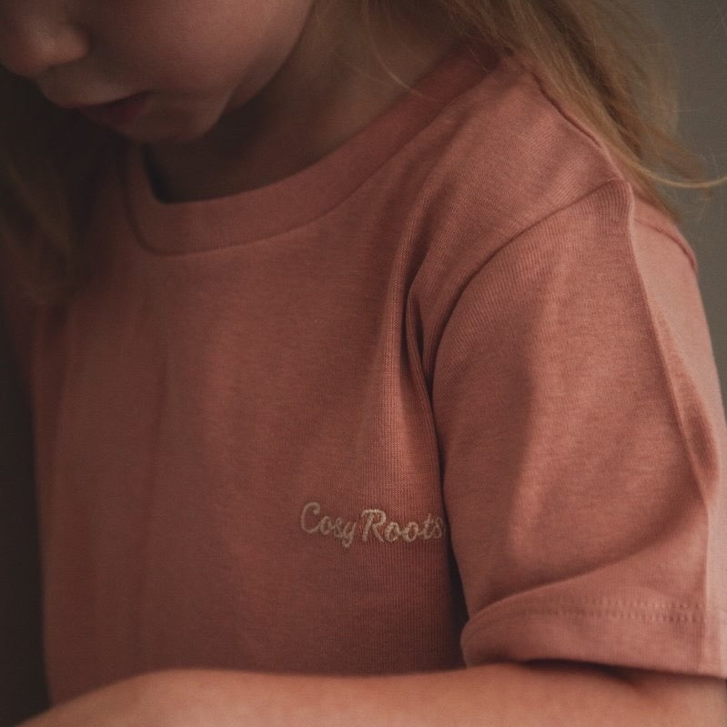 Kuschelig weiche Oversize Kinder T-Shirts aus GOTS-zertifizierter Bio-Baumwolle mit einer sehr feinen Rippenstruktur. Der weiche und sehr hochwertige Bio Baumwoll-Stoff passt wunderbar zum Frühling und zum Sommer und lässt sich perfekt mit unseren Leggings kombinieren. Unser aufgestickter Cosy Roots Schriftzug ist ein echter Hingucker.