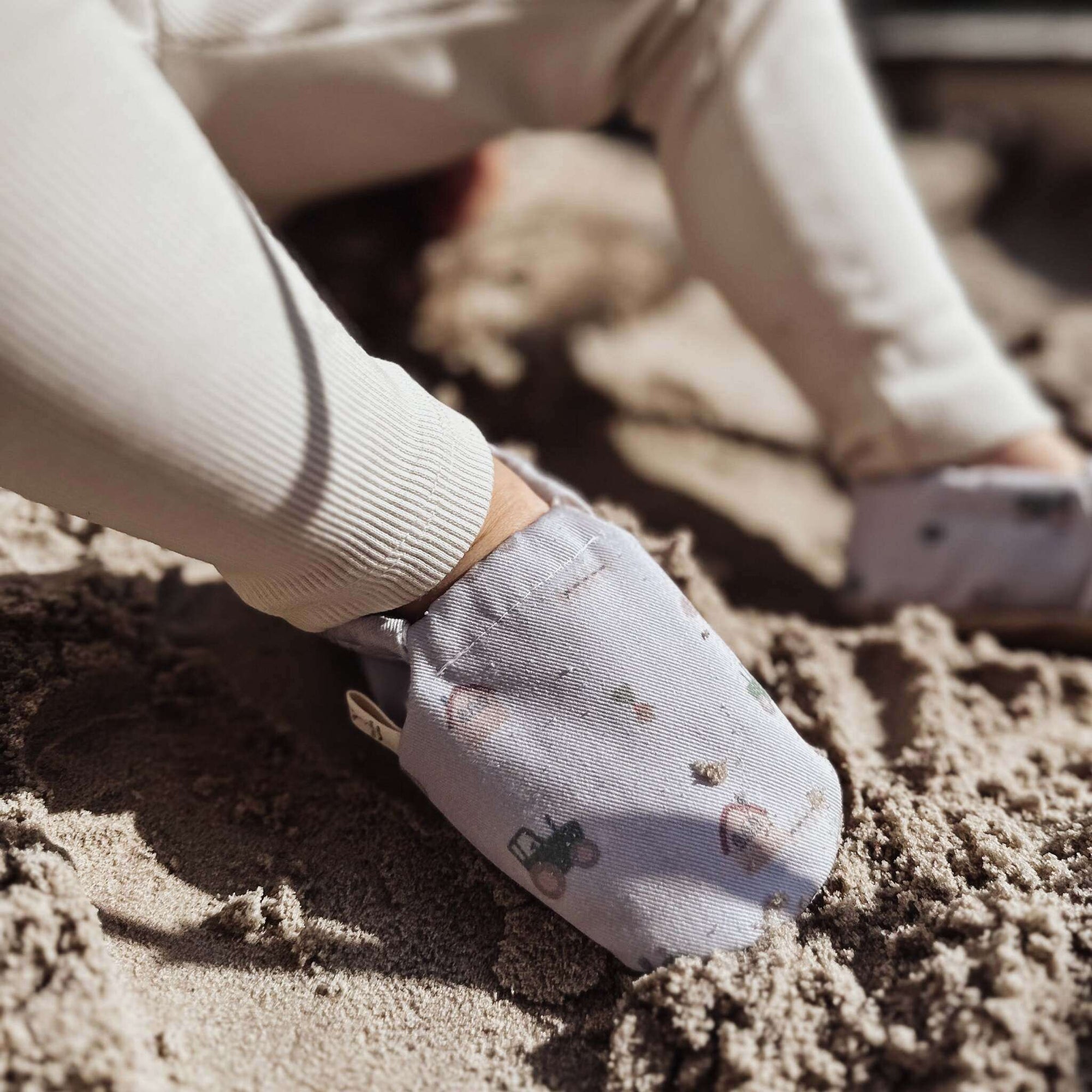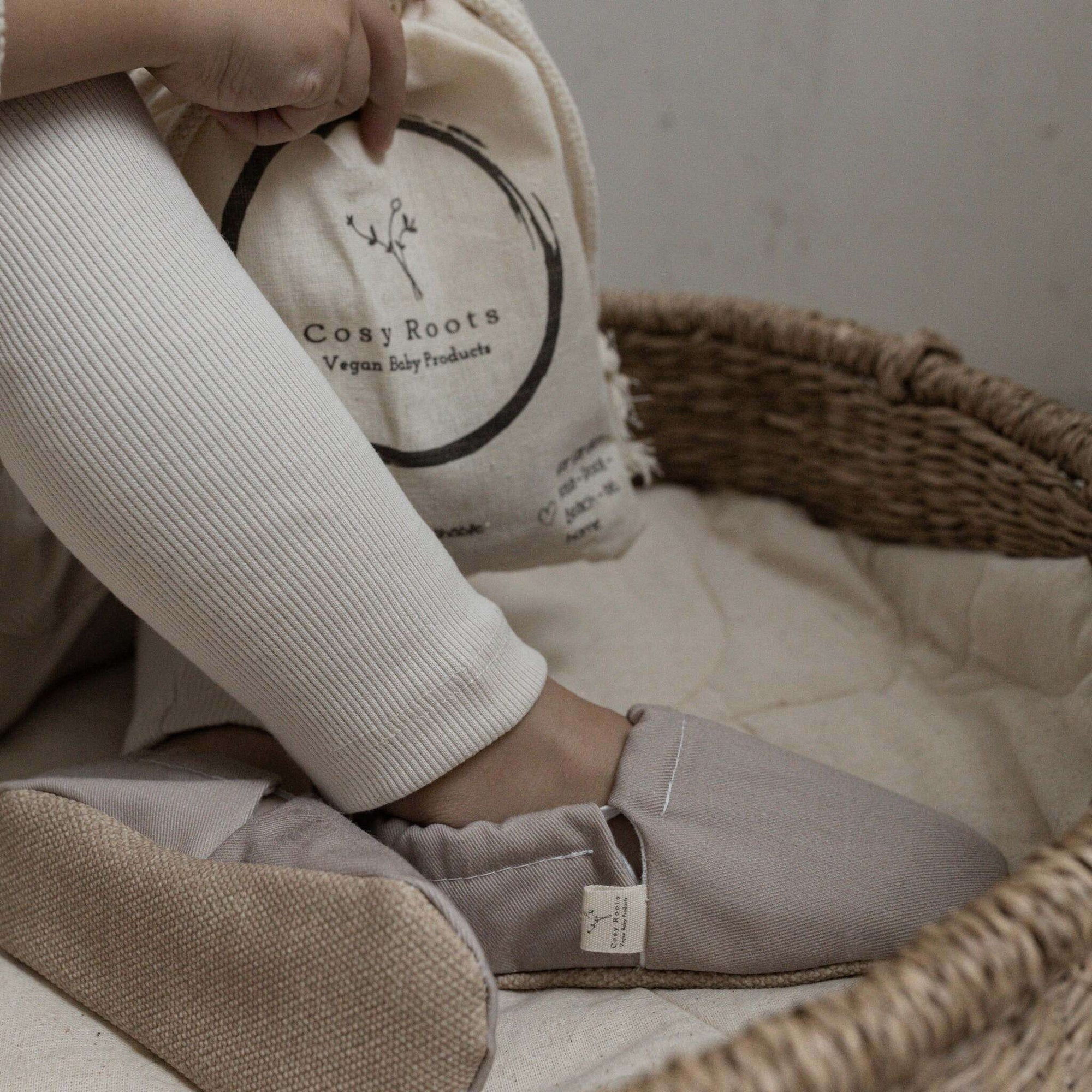 Auf Mamas oder Papas Arm ist es immer richtig schön kuschelig. Doch so langsam möchtest Du die Welt lieber auf eigenen Beinen entdecken. Mit unseren veganen Schühchen bist Du Dank der rutschfesten Sohlen von Anfang an sicher unterwegs, denn wir haben sie sowohl in kleiner Größe für Neugeborene an, als auch als Lauflernschuhe für größere Kinder. In unserem Shop können Mama und Papa ganz einfach die richtige Größe für Dich finden. Unsere Schühchen sind selbstverständlich schadstofffrei und atmungsaktiv, damit Deine kleinen Füßchen auch in heißen Gefilden nicht ins Schwitzen kommen. Gleichzeitig halten sie Dich auch bei kalten Temperaturen wohlig warm und schützen Dich bei Deinen kleinen Abenteuern vor Wind und Wetter. Sie eignen sich sowohl als Hausschuhe für den Innenbereich, als auch als Lauflernschuhe für draußen auf weichen Böden. Unsere Schuhe dürfen sogar mit in den Pool und ins Meer und behalten auch dort ihre rutschhemmende Eigenschaft. Dank des hochwertigen und recycelten Materials sind sie äußerst bequem und schmiegen sich mit dem weichen Gummizug perfekt an Deine Füße an.