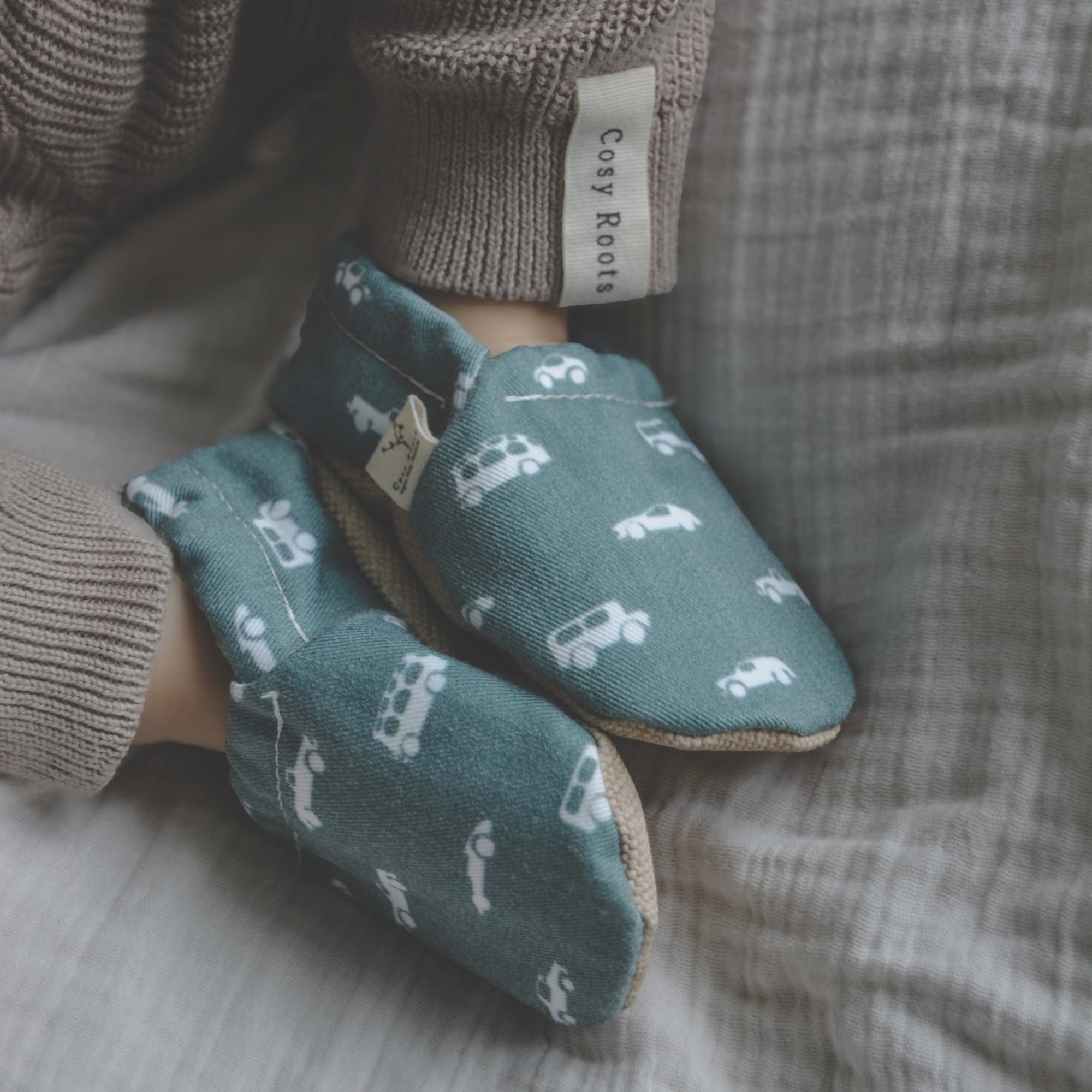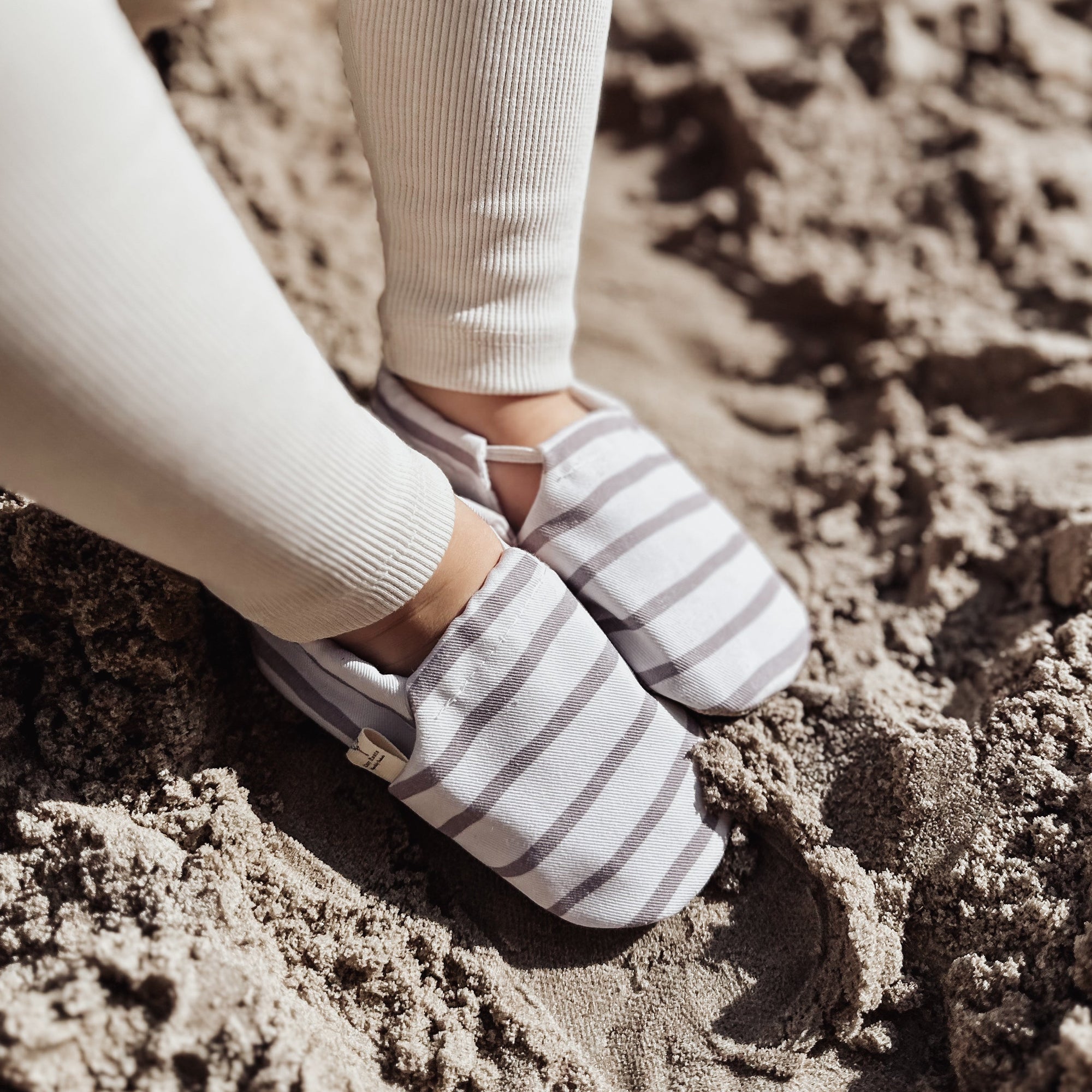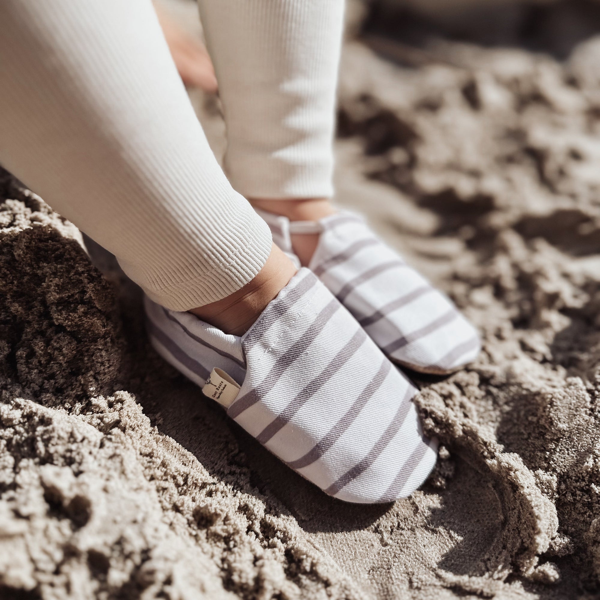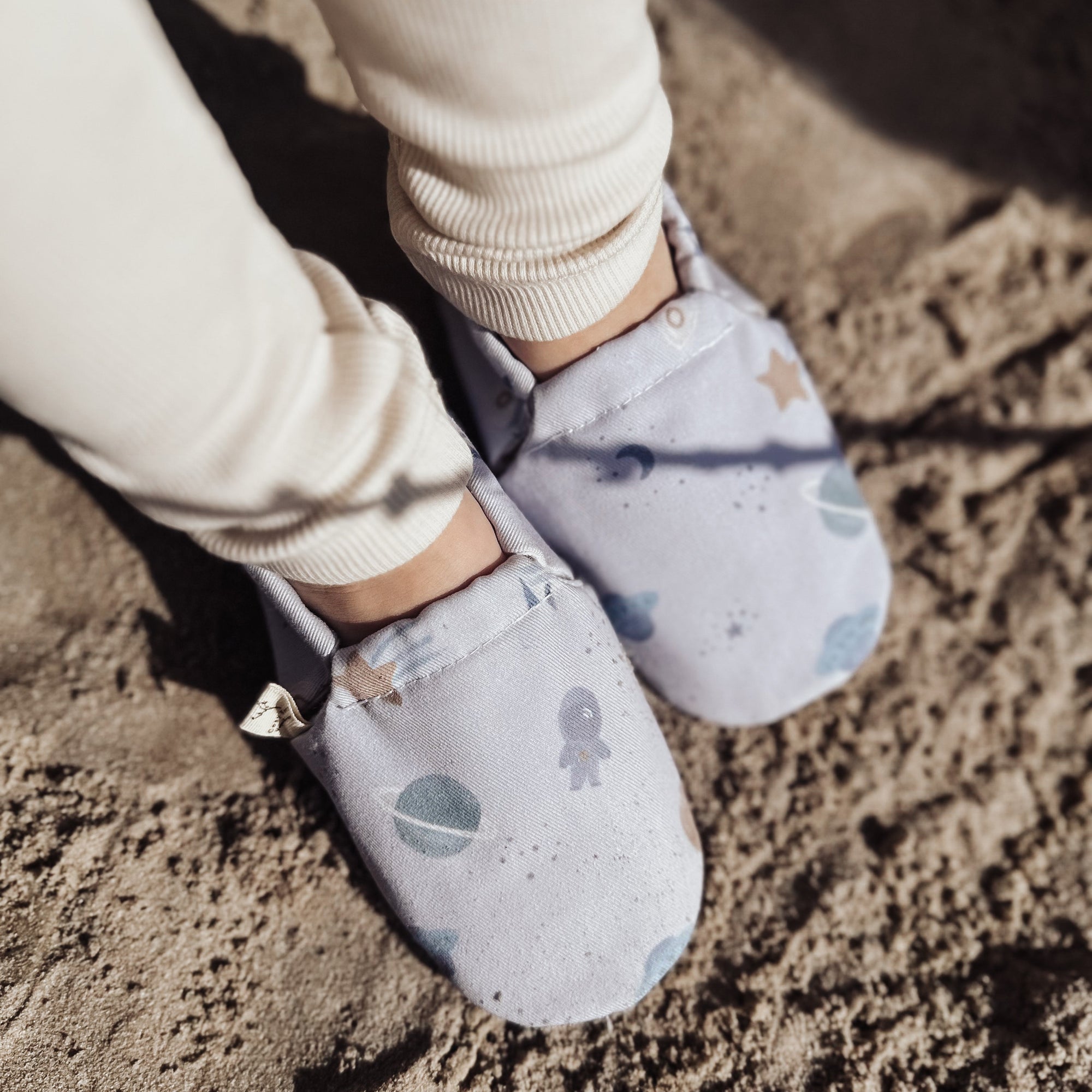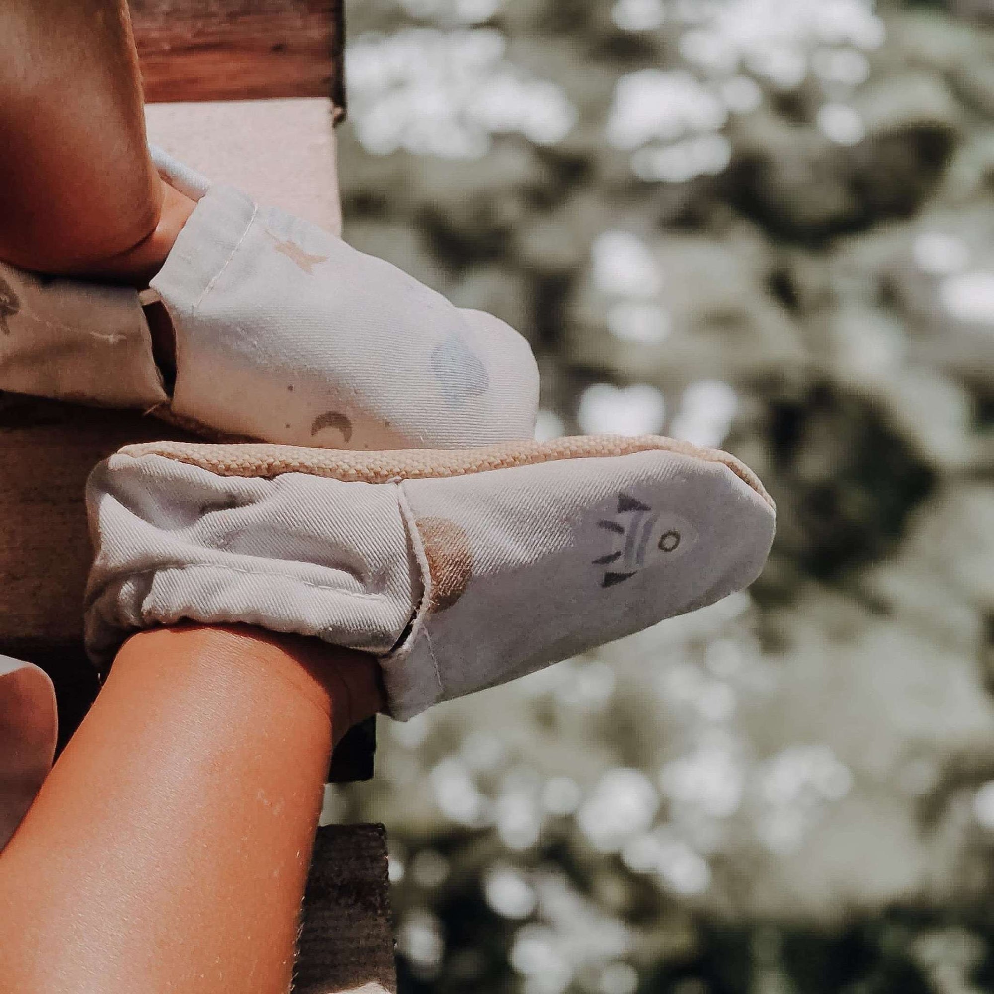 Auf Mamas oder Papas Arm ist es immer richtig schön kuschelig. Doch so langsam möchtest Du die Welt lieber auf eigenen Beinen entdecken. Mit unseren veganen Schühchen bist Du Dank der rutschfesten Sohlen von Anfang an sicher unterwegs, denn wir haben sie sowohl in kleiner Größe für Neugeborene an, als auch als Lauflernschuhe für größere Kinder. In unserem Shop können Mama und Papa ganz einfach die richtige Größe für Dich finden. Unsere Schühchen sind selbstverständlich schadstofffrei und atmungsaktiv, damit Deine kleinen Füßchen auch in heißen Gefilden nicht ins Schwitzen kommen. Gleichzeitig halten sie Dich auch bei kalten Temperaturen wohlig warm und schützen Dich bei Deinen kleinen Abenteuern vor Wind und Wetter. Sie eignen sich sowohl als Hausschuhe für den Innenbereich, als auch als Lauflernschuhe für draußen auf weichen Böden. Unsere Schuhe dürfen sogar mit in den Pool und ins Meer und behalten auch dort ihre rutschhemmende Eigenschaft. Dank des hochwertigen und recycelten Materials sind sie äußerst bequem und schmiegen sich mit dem weichen Gummizug perfekt an Deine Füße an.