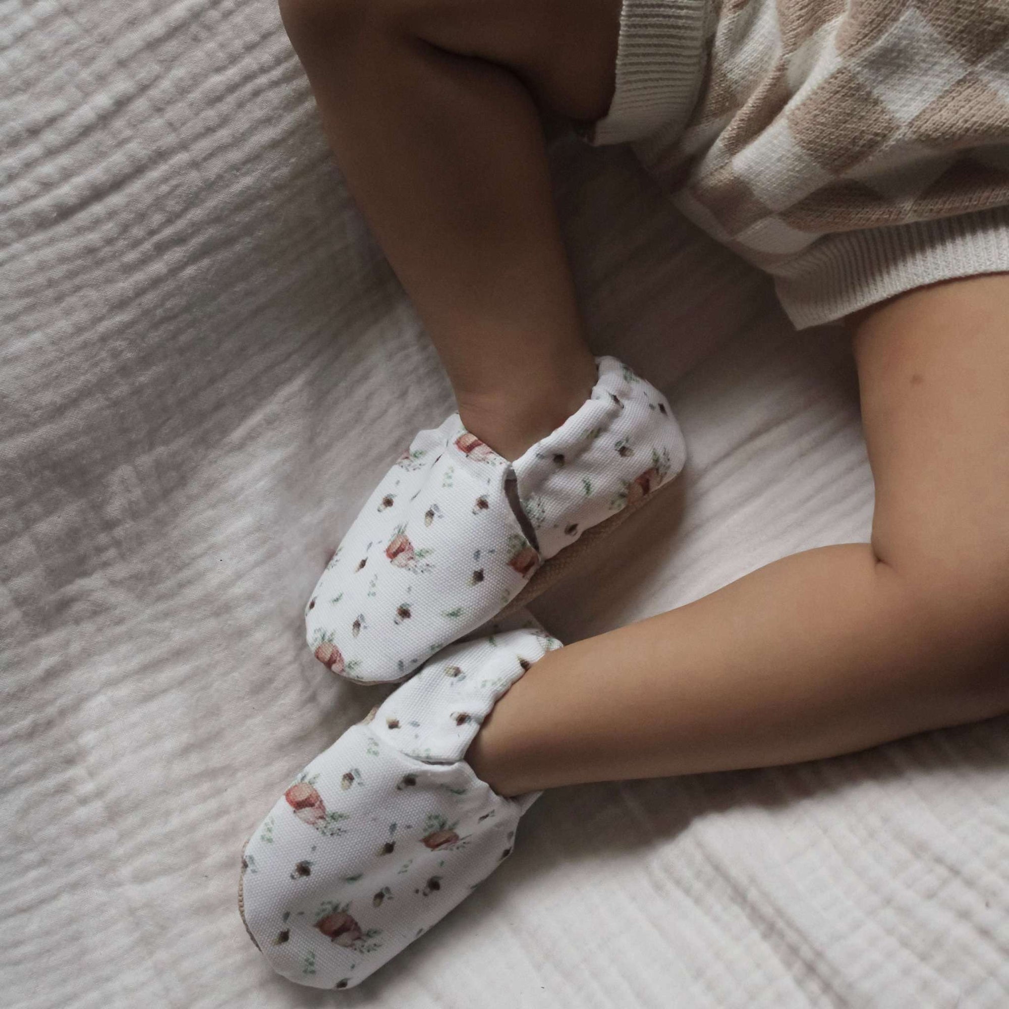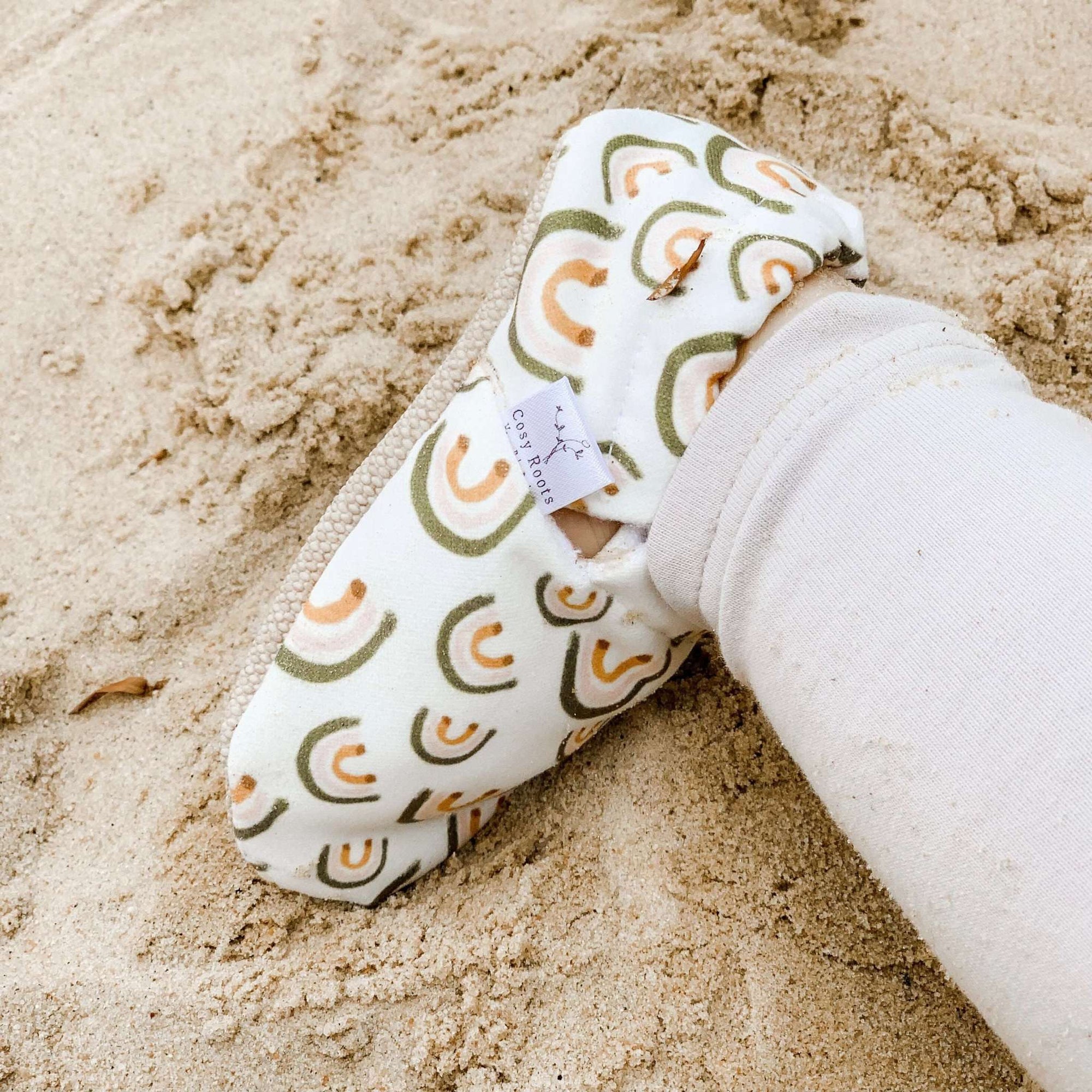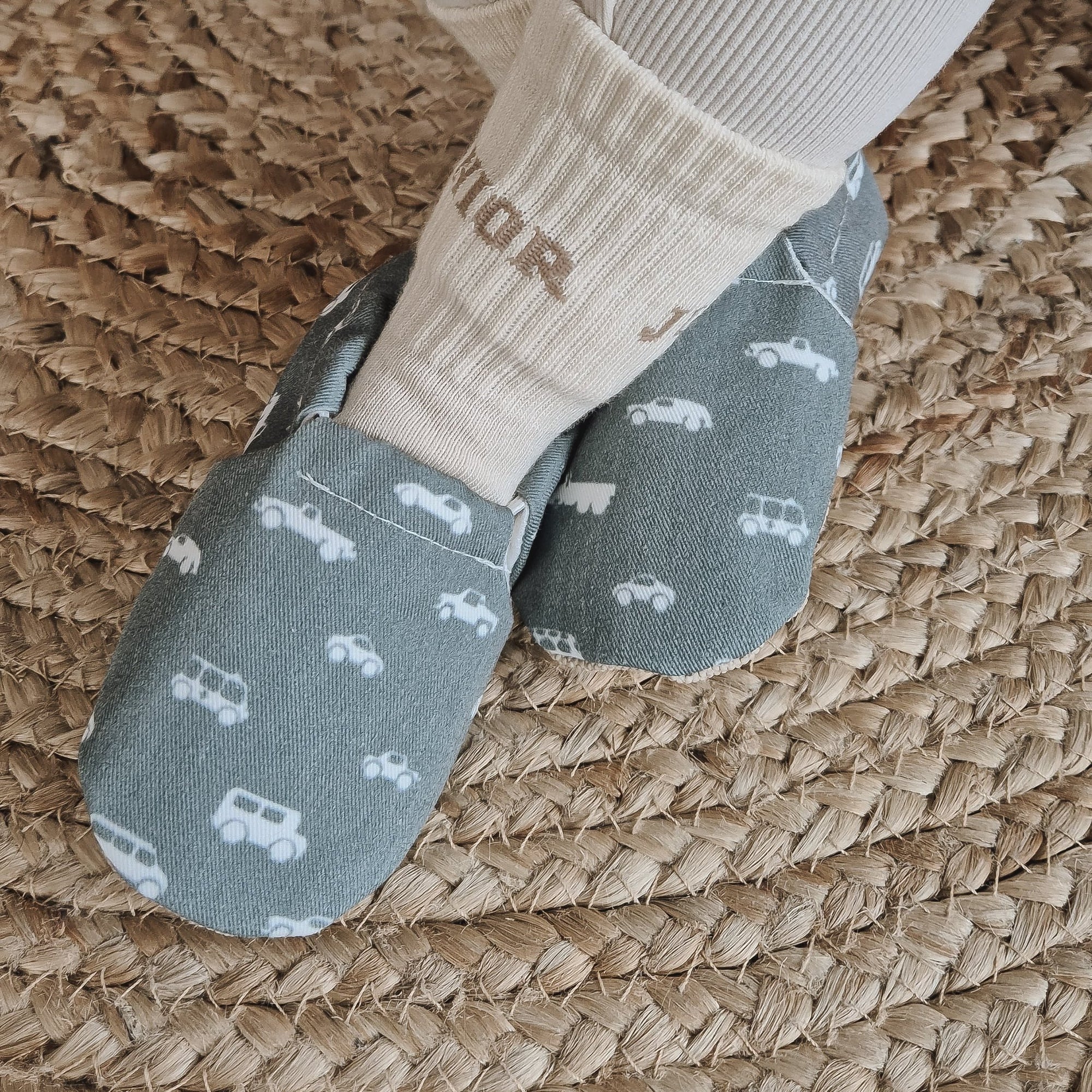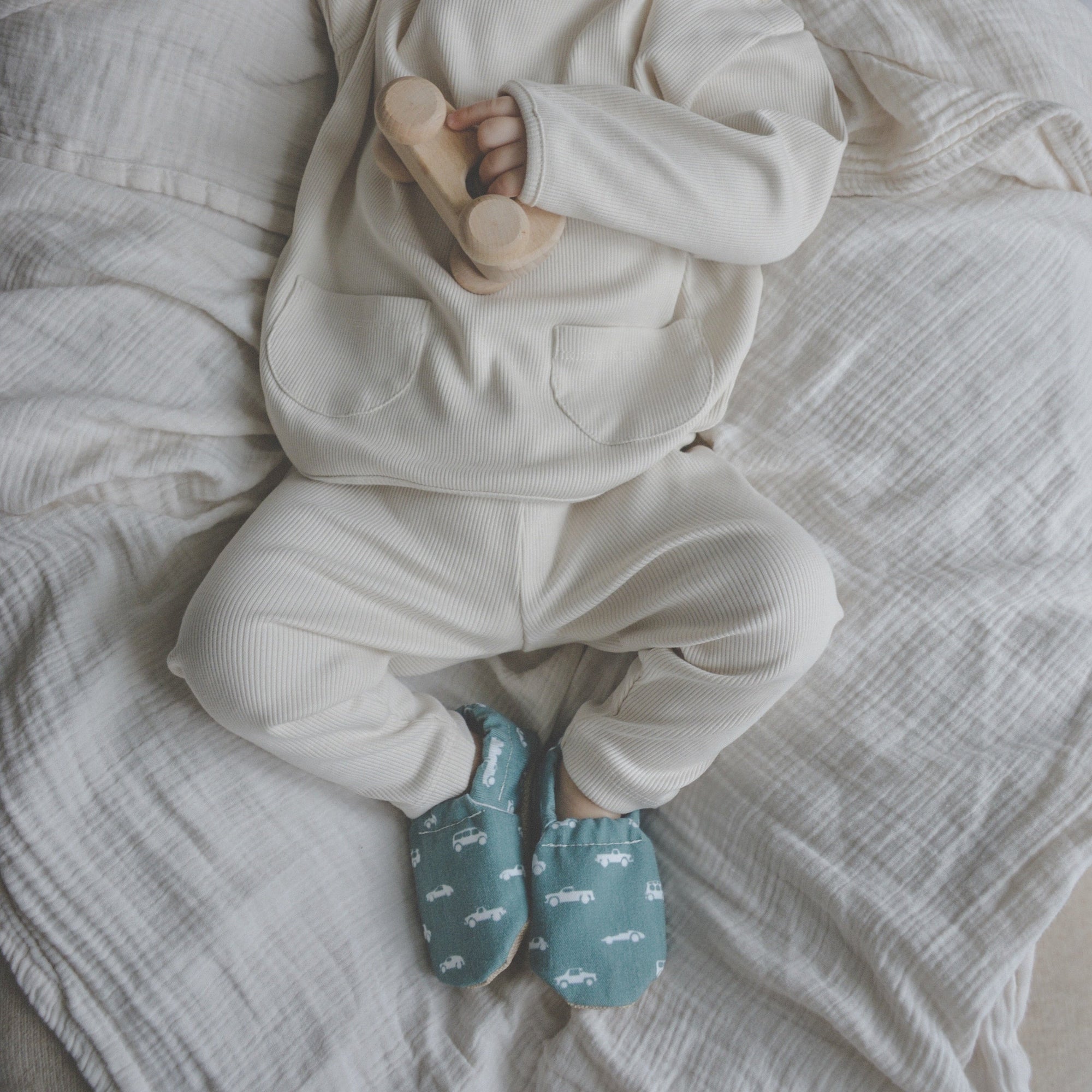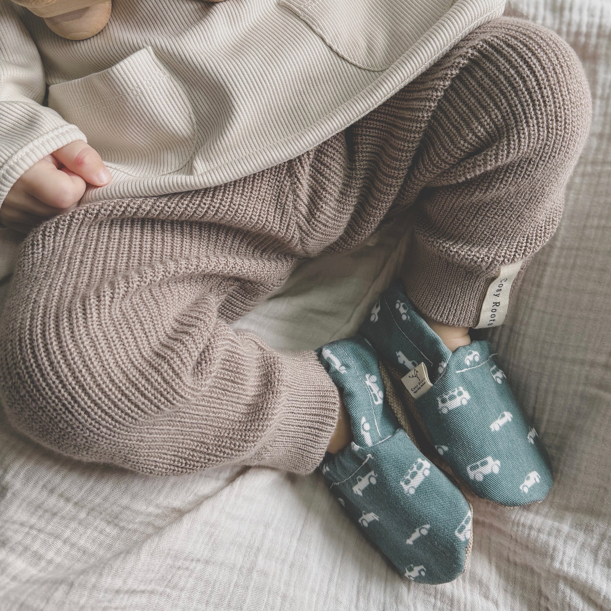Auf Mamas oder Papas Arm ist es immer richtig schön kuschelig. Doch so langsam möchtest Du die Welt lieber auf eigenen Beinen entdecken. Mit unseren veganen Schühchen bist Du Dank der rutschfesten Sohlen von Anfang an sicher unterwegs, denn wir haben sie sowohl in kleiner Größe für Neugeborene an, als auch als Lauflernschuhe für größere Kinder. In unserem Shop können Mama und Papa ganz einfach die richtige Größe für Dich finden. Unsere Schühchen sind selbstverständlich schadstofffrei und atmungsaktiv, damit Deine kleinen Füßchen auch in heißen Gefilden nicht ins Schwitzen kommen. Gleichzeitig halten sie Dich auch bei kalten Temperaturen wohlig warm und schützen Dich bei Deinen kleinen Abenteuern vor Wind und Wetter. Sie eignen sich sowohl als Hausschuhe für den Innenbereich, als auch als Lauflernschuhe für draußen auf weichen Böden. Unsere Schuhe dürfen sogar mit in den Pool und ins Meer und behalten auch dort ihre rutschhemmende Eigenschaft. Dank des hochwertigen und recycelten Materials sind sie äußerst bequem und schmiegen sich mit dem weichen Gummizug perfekt an Deine Füße an.
