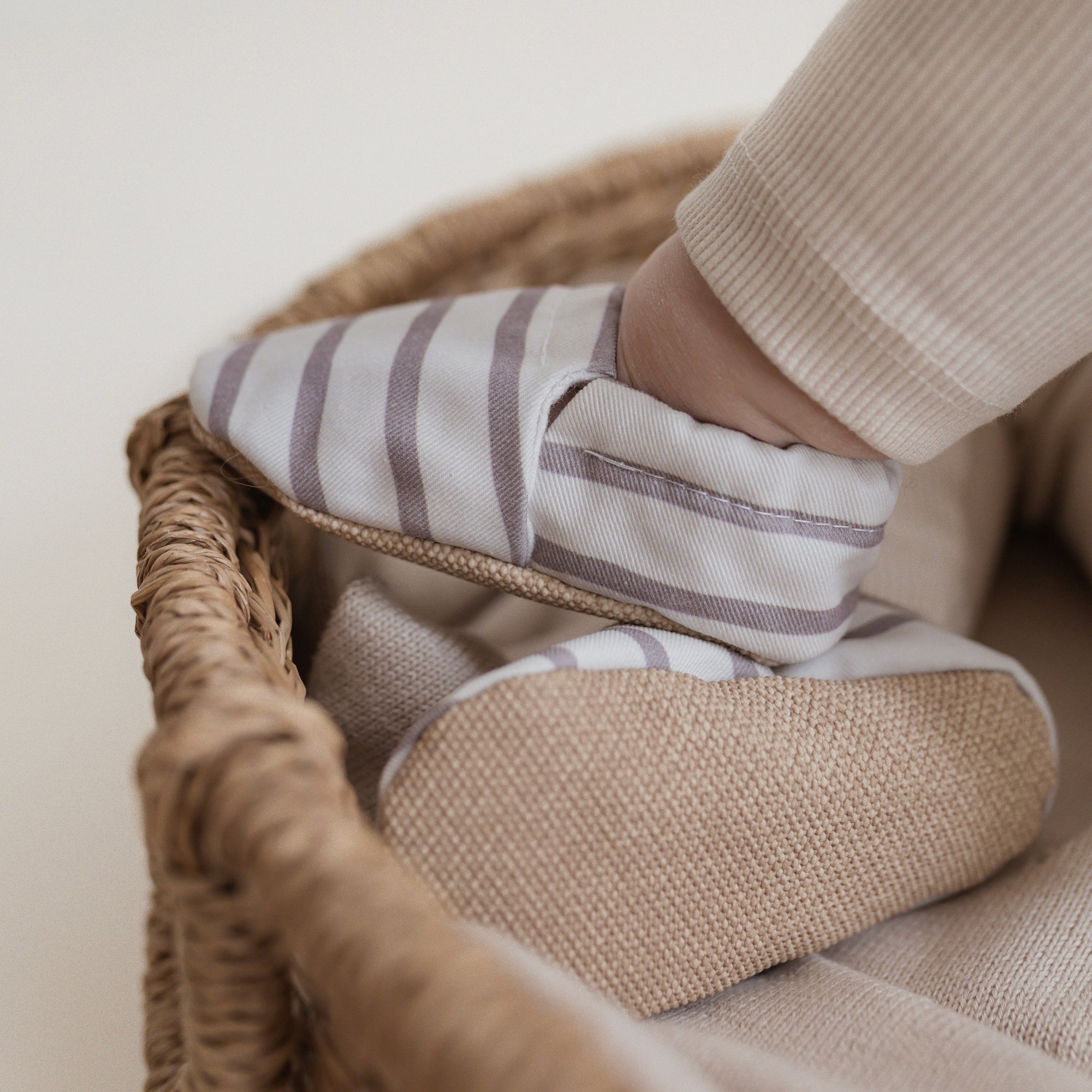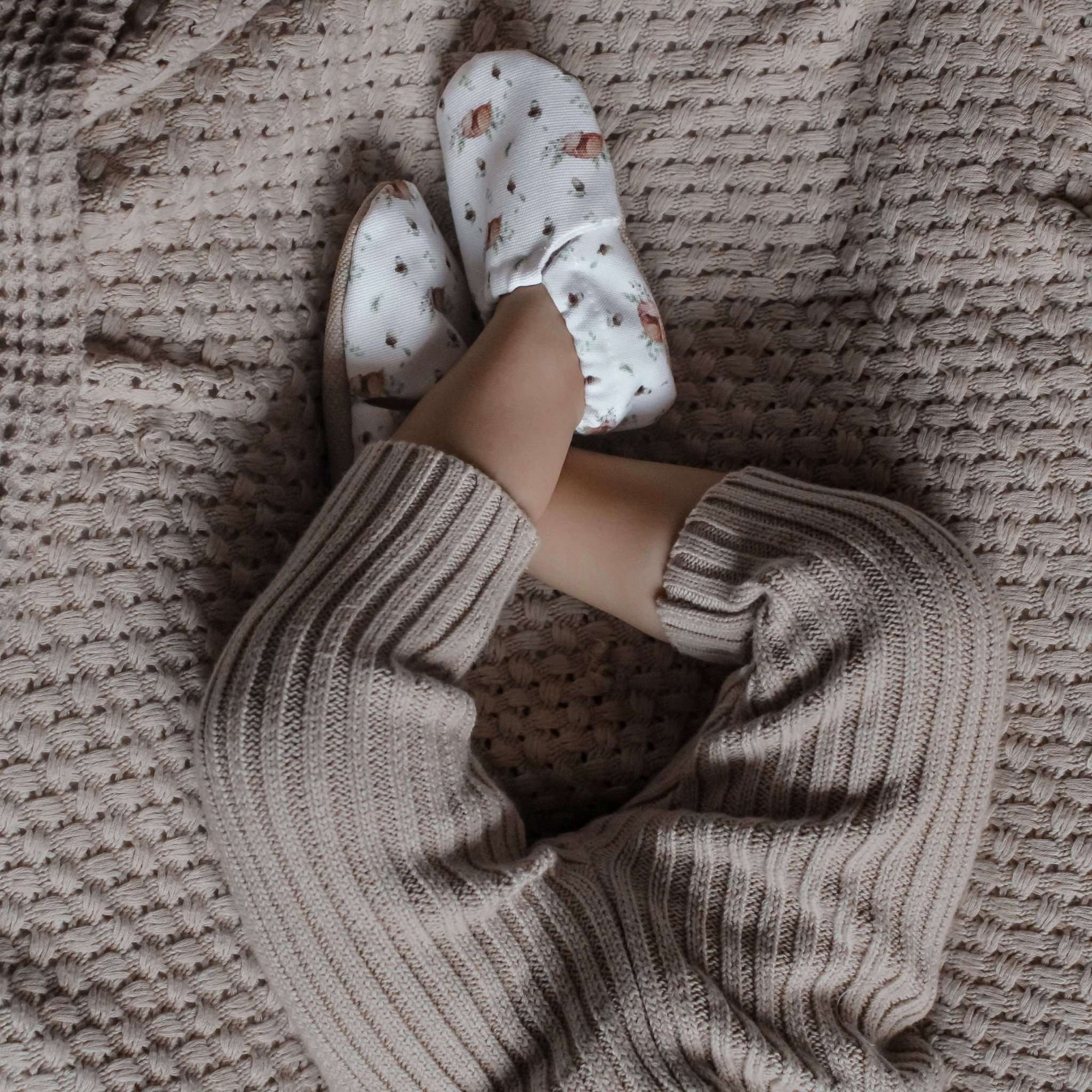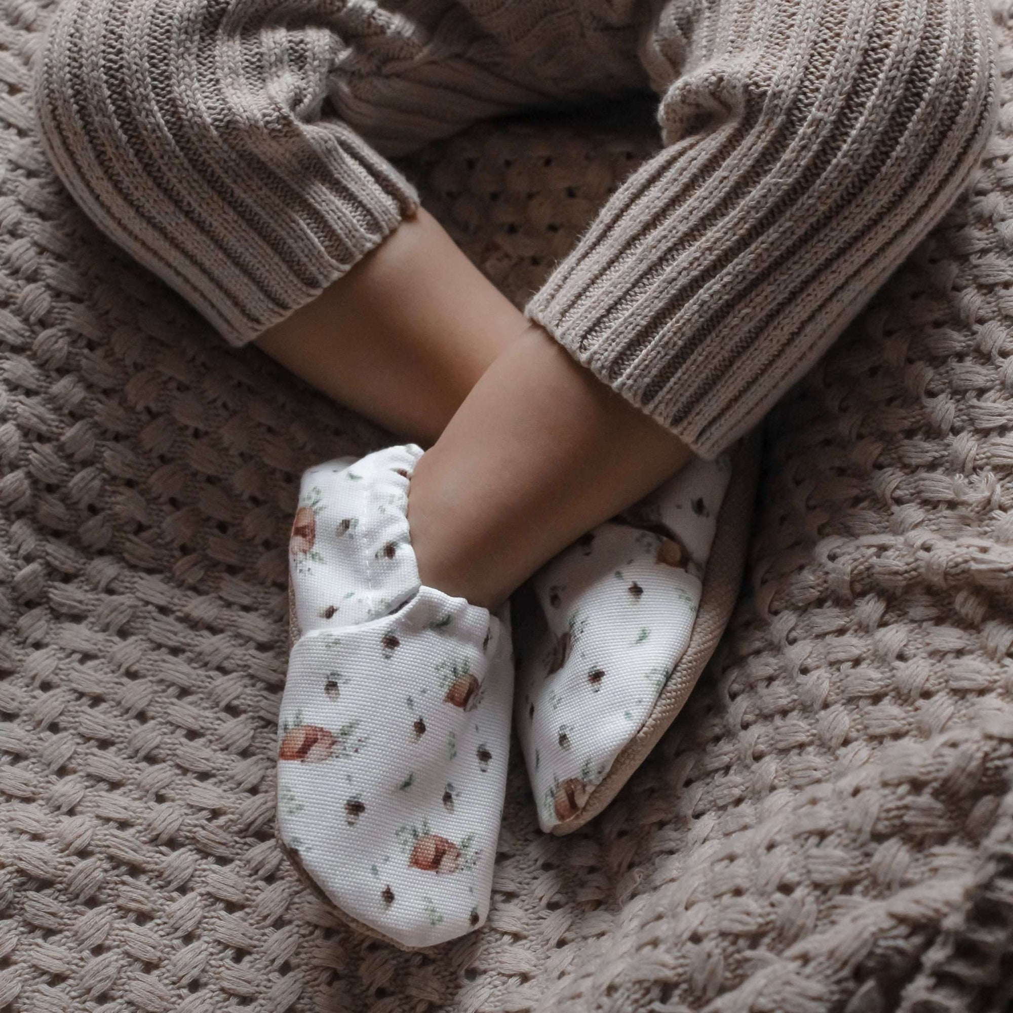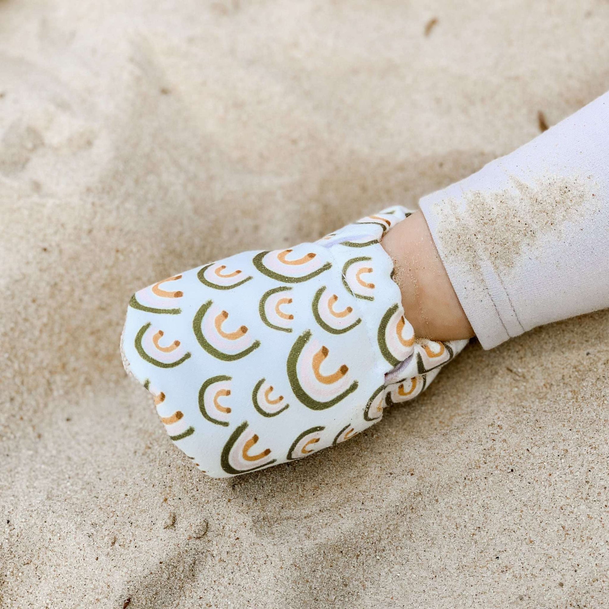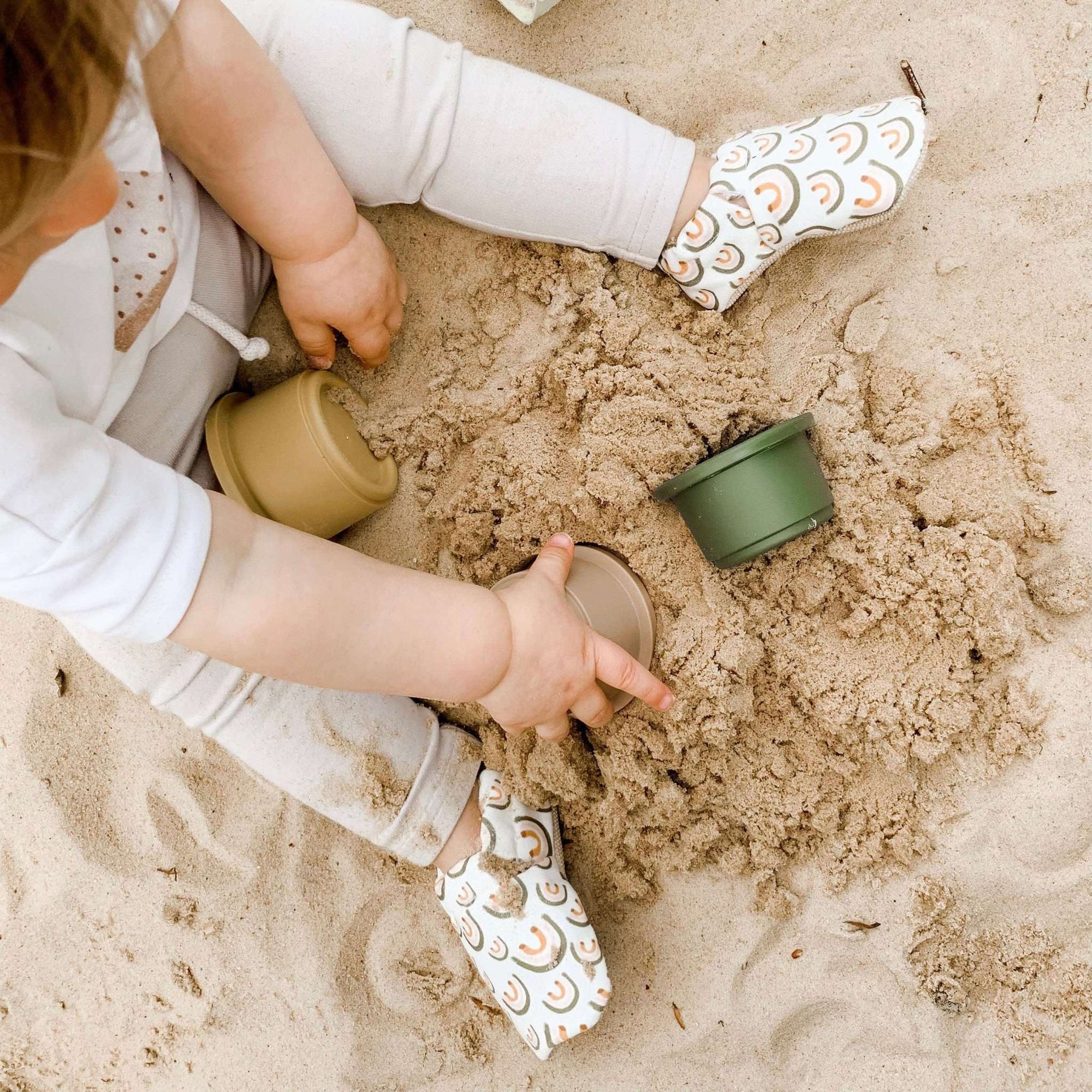 Auf Mamas oder Papas Arm ist es immer richtig schön kuschelig. Doch so langsam möchtest Du die Welt lieber auf eigenen Beinen entdecken. Mit unseren veganen Schühchen bist Du Dank der rutschfesten Sohlen von Anfang an sicher unterwegs, denn wir haben sie sowohl in kleiner Größe für Neugeborene an, als auch als Lauflernschuhe für größere Kinder. In unserem Shop können Mama und Papa ganz einfach die richtige Größe für Dich finden. Unsere Schühchen sind selbstverständlich schadstofffrei und atmungsaktiv, damit Deine kleinen Füßchen auch in heißen Gefilden nicht ins Schwitzen kommen. Gleichzeitig halten sie Dich auch bei kalten Temperaturen wohlig warm und schützen Dich bei Deinen kleinen Abenteuern vor Wind und Wetter. Sie eignen sich sowohl als Hausschuhe für den Innenbereich, als auch als Lauflernschuhe für draußen auf weichen Böden. Unsere Schuhe dürfen sogar mit in den Pool und ins Meer und behalten auch dort ihre rutschhemmende Eigenschaft. Dank des hochwertigen und recycelten Materials sind sie äußerst bequem und schmiegen sich mit dem weichen Gummizug perfekt an Deine Füße an.