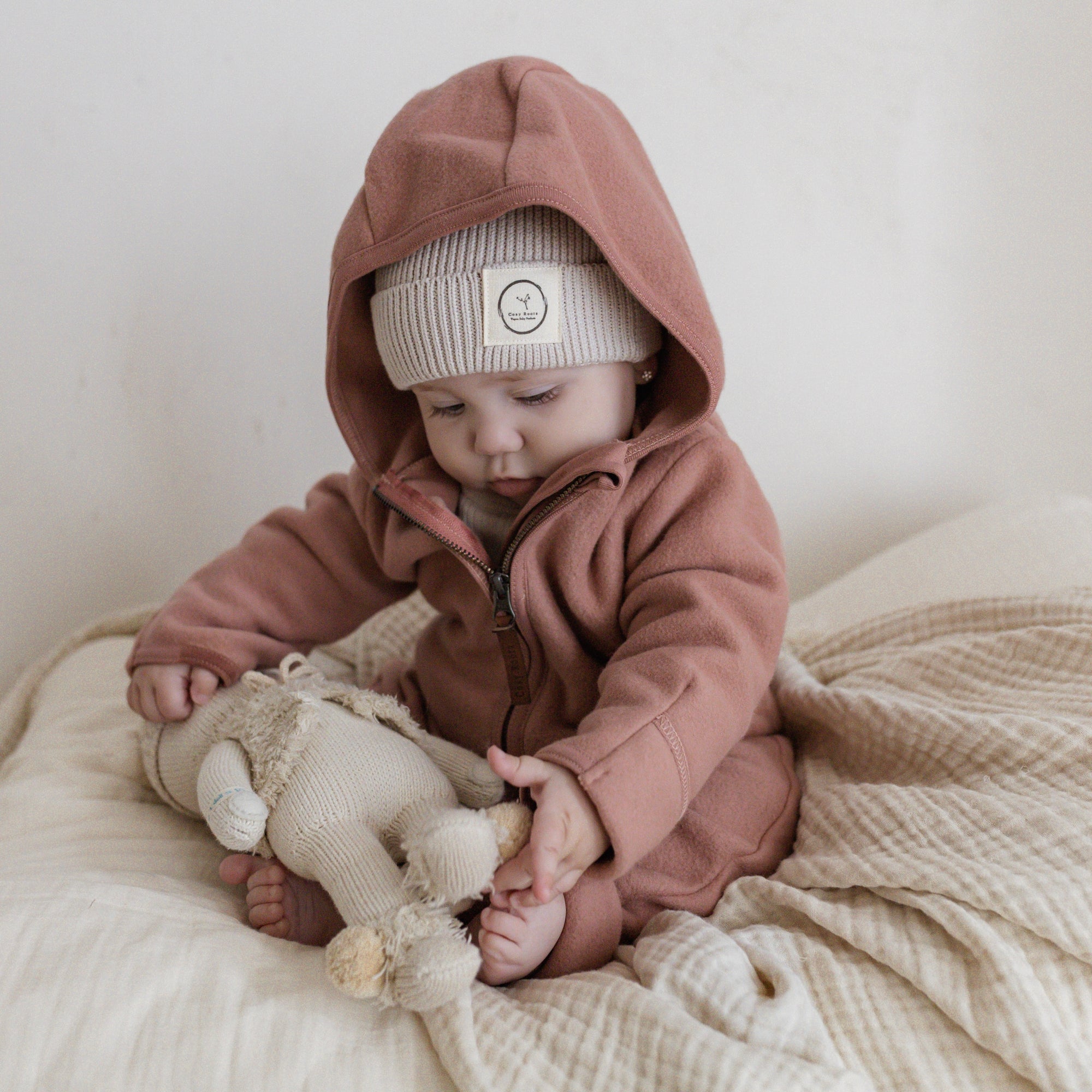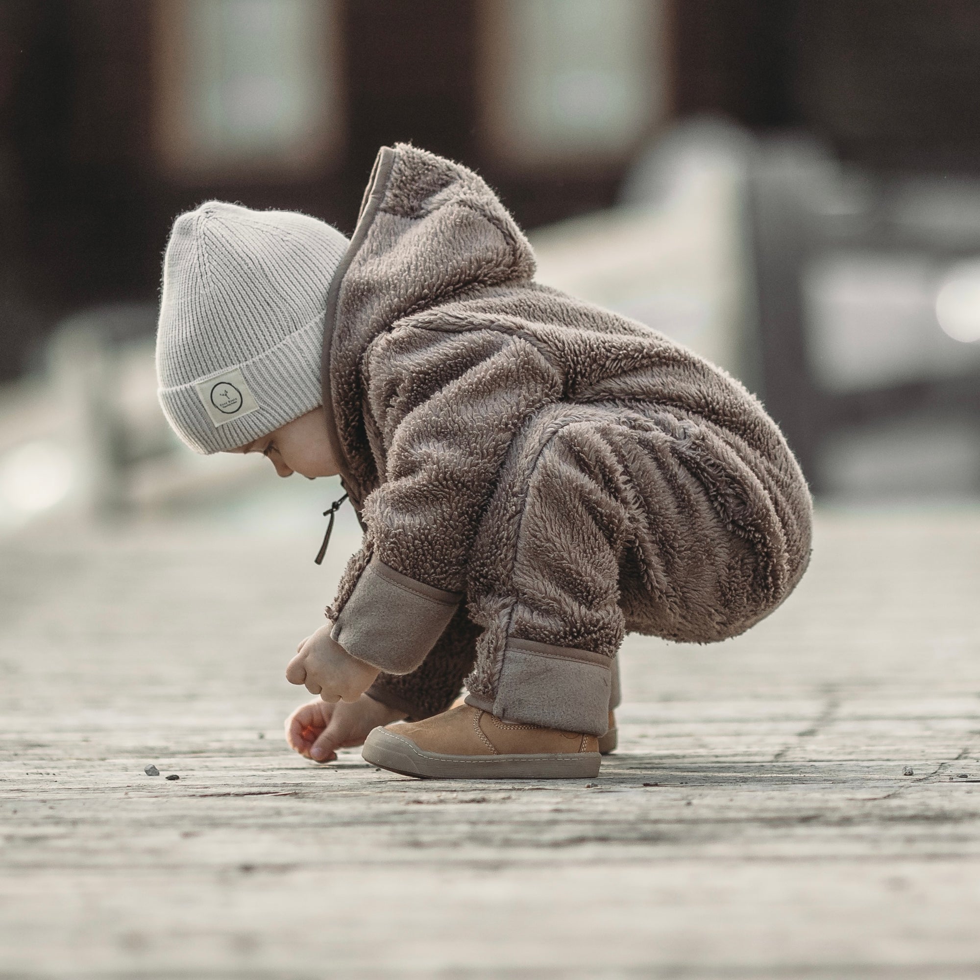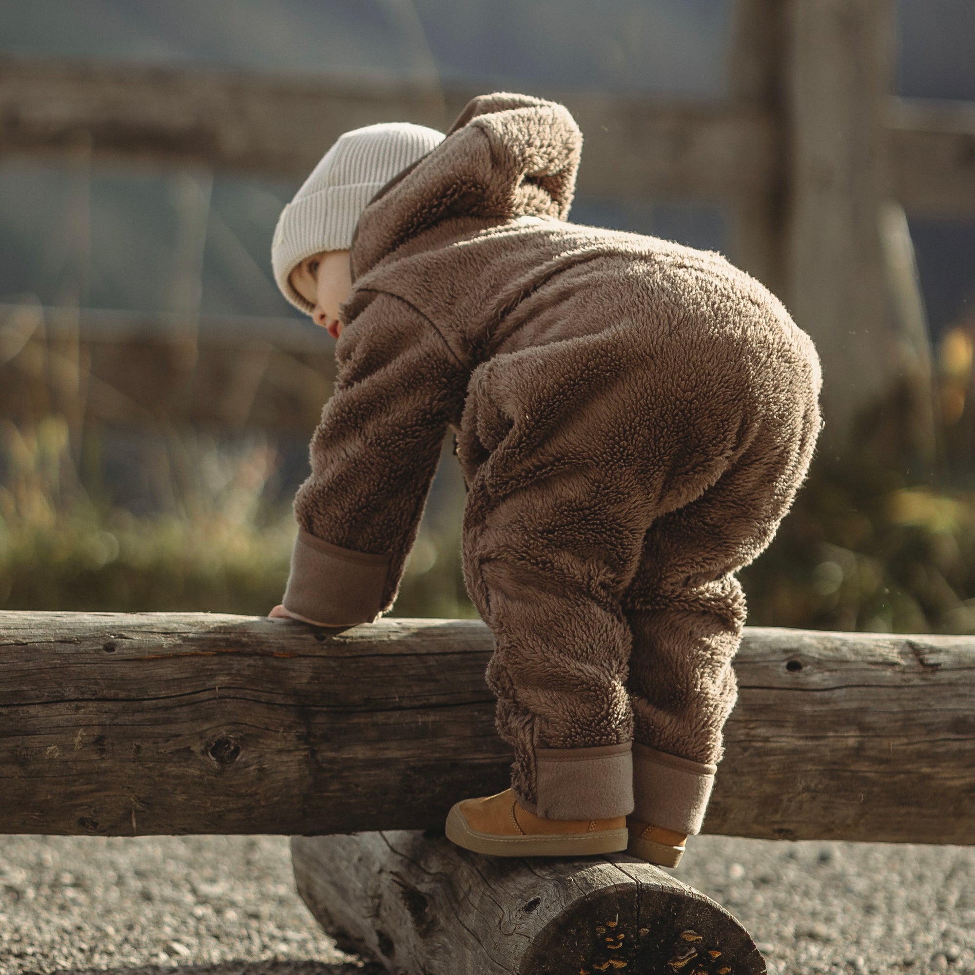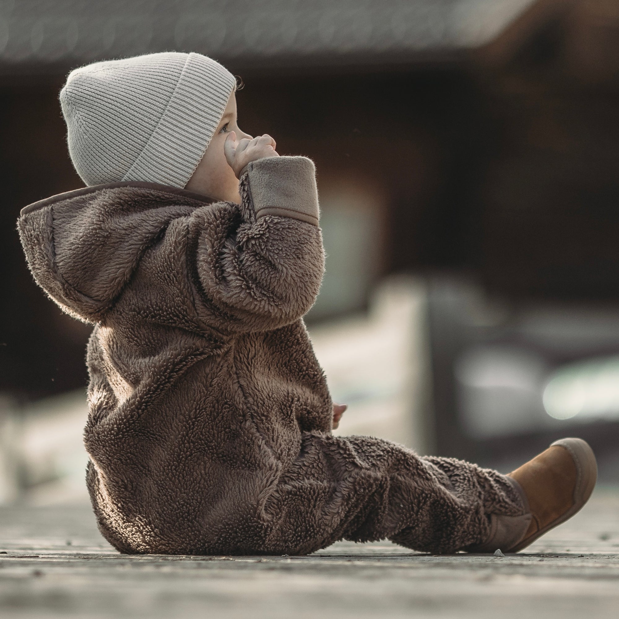 Kuschelig weiche Jacken, Overalls & Westen aus GOTS-zertifizierter Bio Baumwolle in unseren wunderschönen Melange Tönen und dem kuscheligsten Bio Teddy Stoff. Natürlich mit hinterlegtem Zipper und Kinnschutz versehen sowie Umschlagbündchen an Händen und Füßen (bei den Overalls und Jacken), um Deinen Liebling warm zu halten.