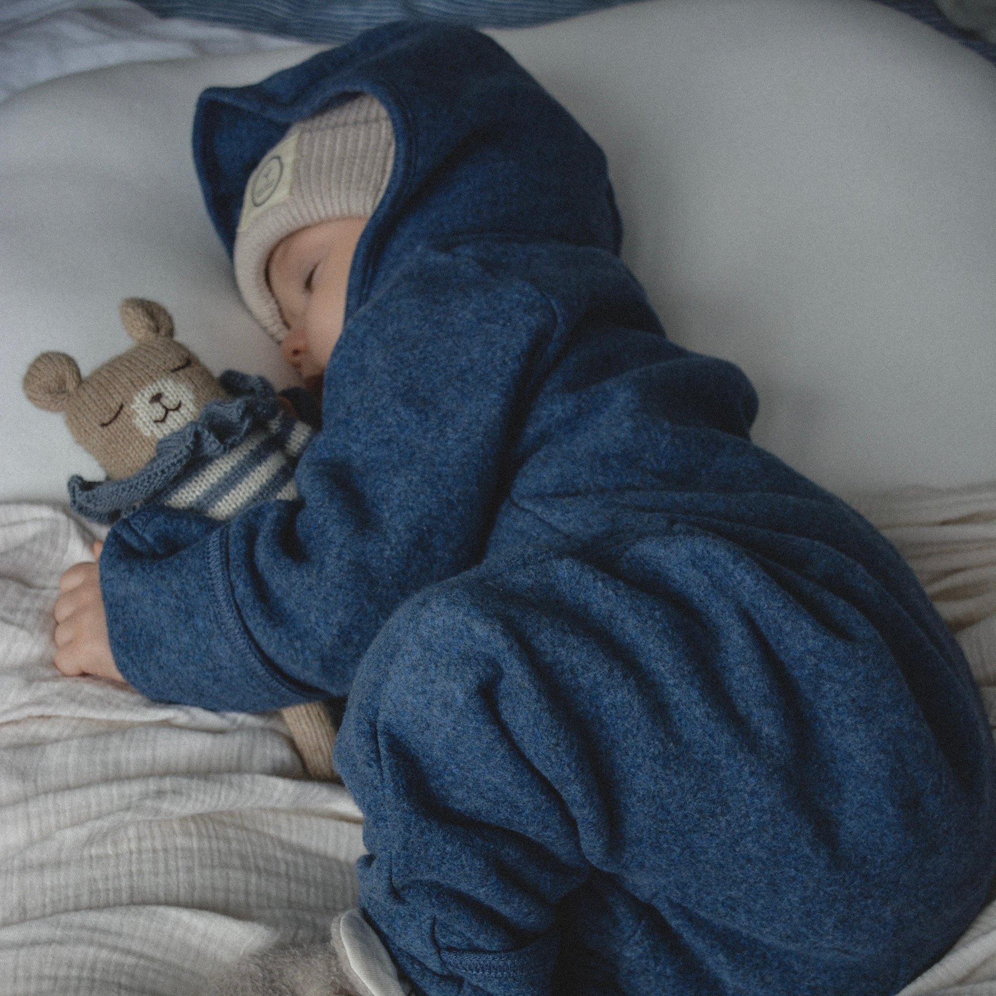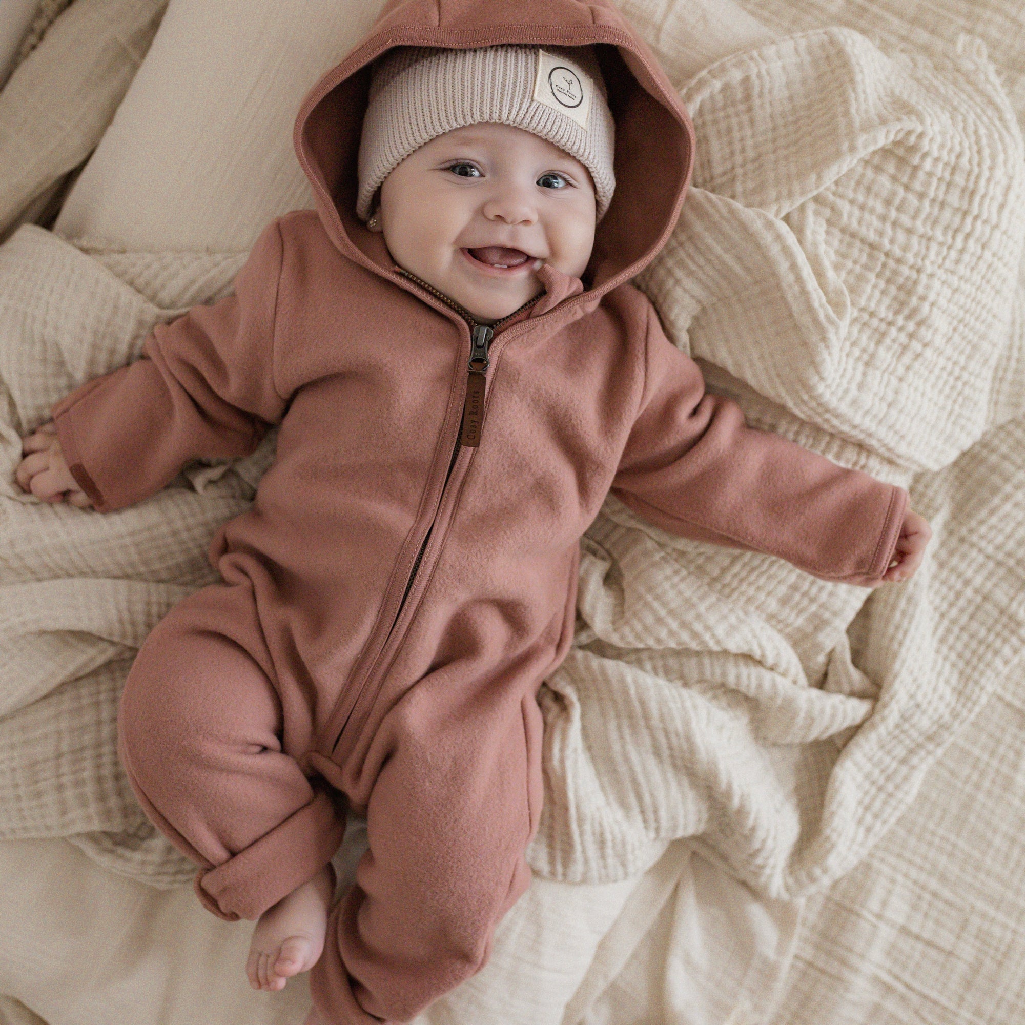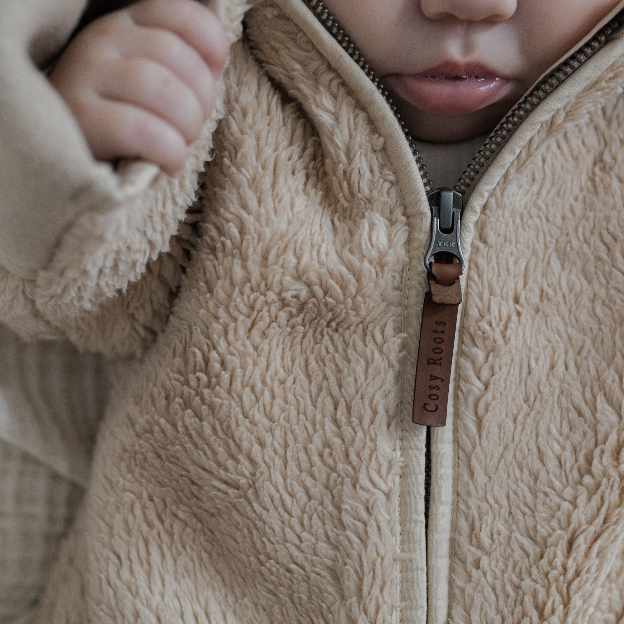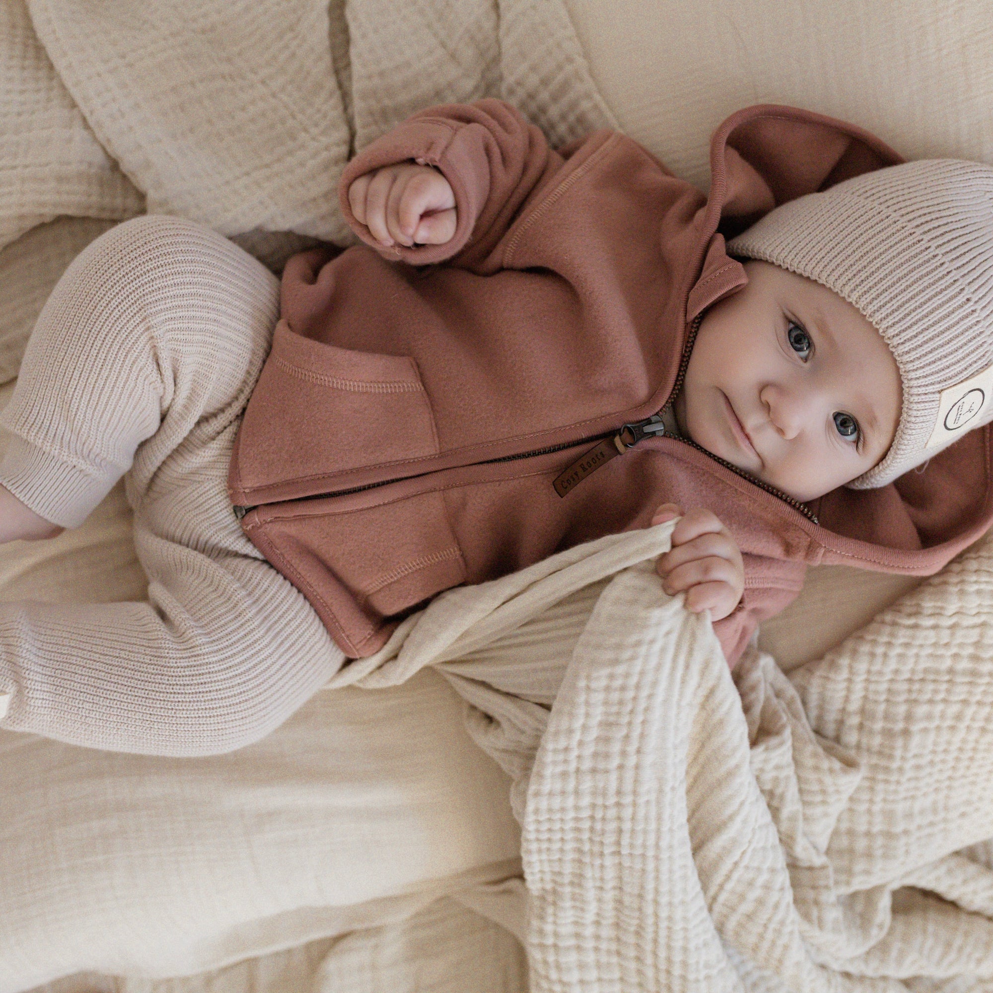 Kuschelig weiche Jacken, Overalls & Westen aus GOTS-zertifizierter Bio Baumwolle in unseren wunderschönen Melange Tönen und dem kuscheligsten Bio Teddy Stoff. Natürlich mit hinterlegtem Zipper und Kinnschutz versehen sowie Umschlagbündchen an Händen und Füßen (bei den Overalls und Jacken), um Deinen Liebling warm zu halten.