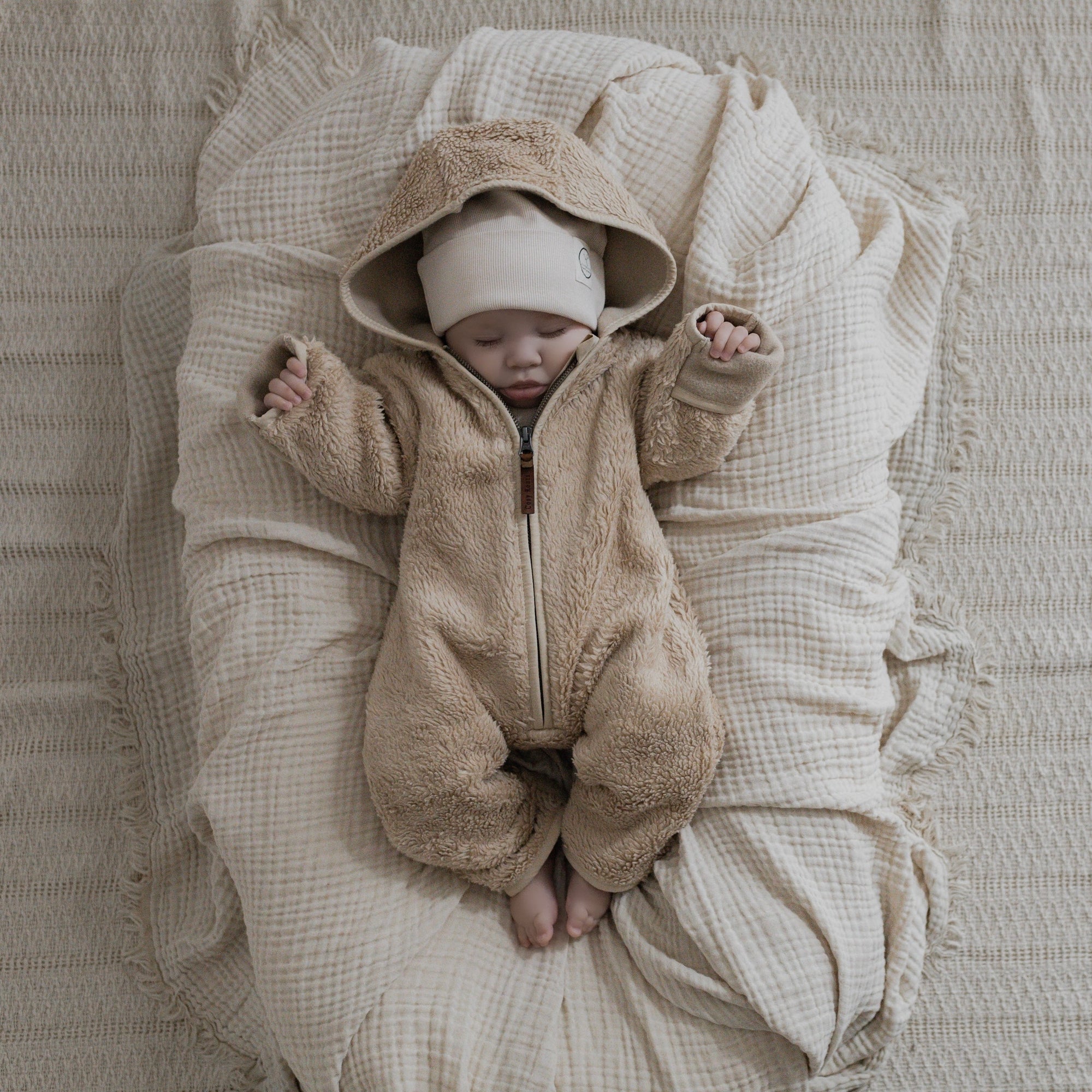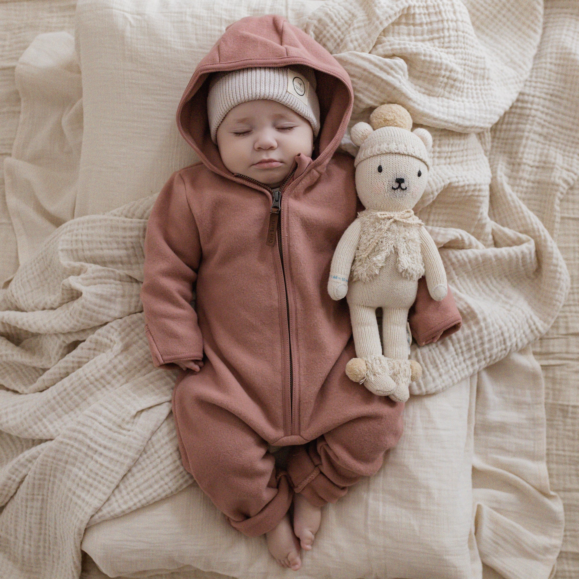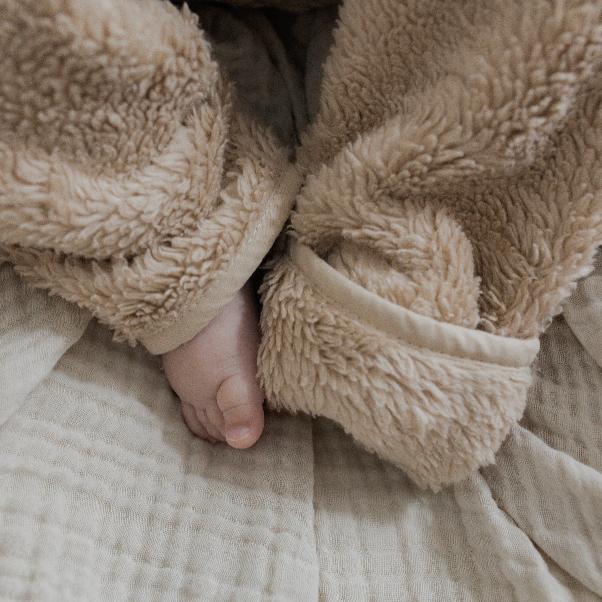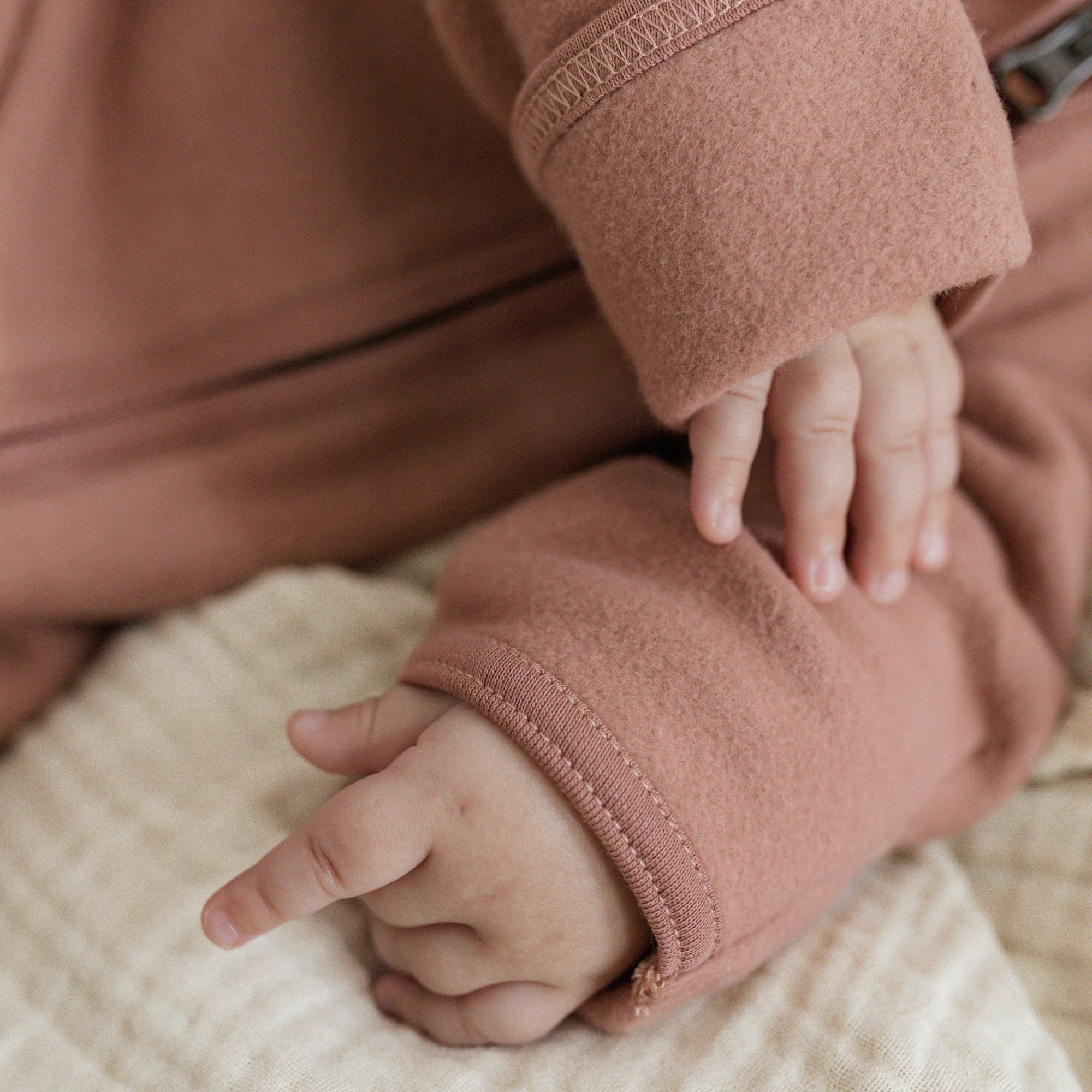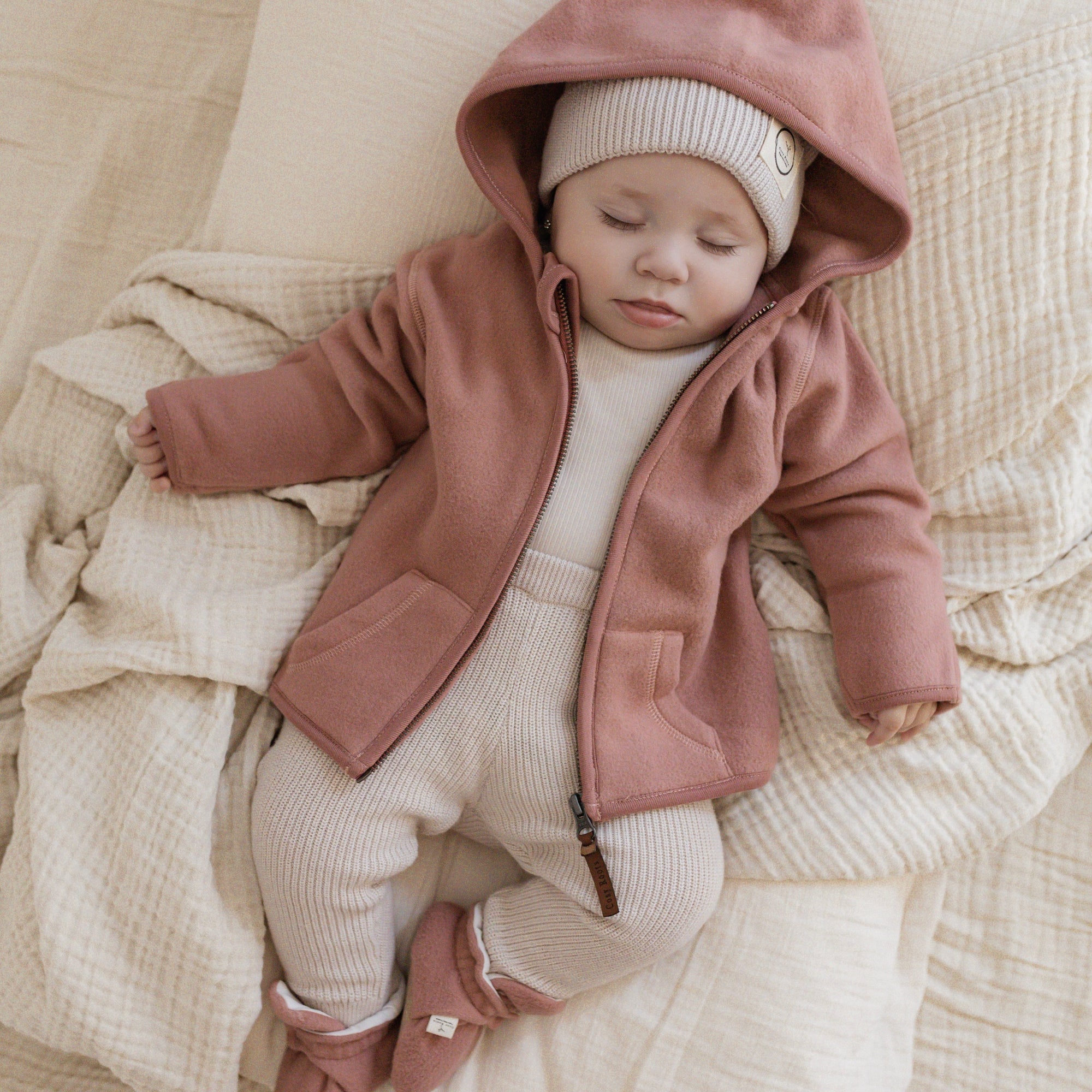 Kuschelig weiche Jacken, Overalls & Westen aus GOTS-zertifizierter Bio Baumwolle in unseren wunderschönen Melange Tönen und dem kuscheligsten Bio Teddy Stoff. Natürlich mit hinterlegtem Zipper und Kinnschutz versehen sowie Umschlagbündchen an Händen und Füßen (bei den Overalls und Jacken), um Deinen Liebling warm zu halten.