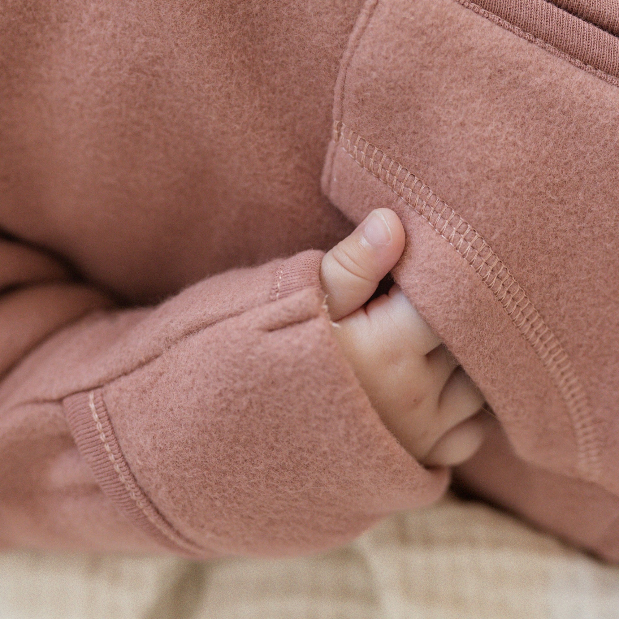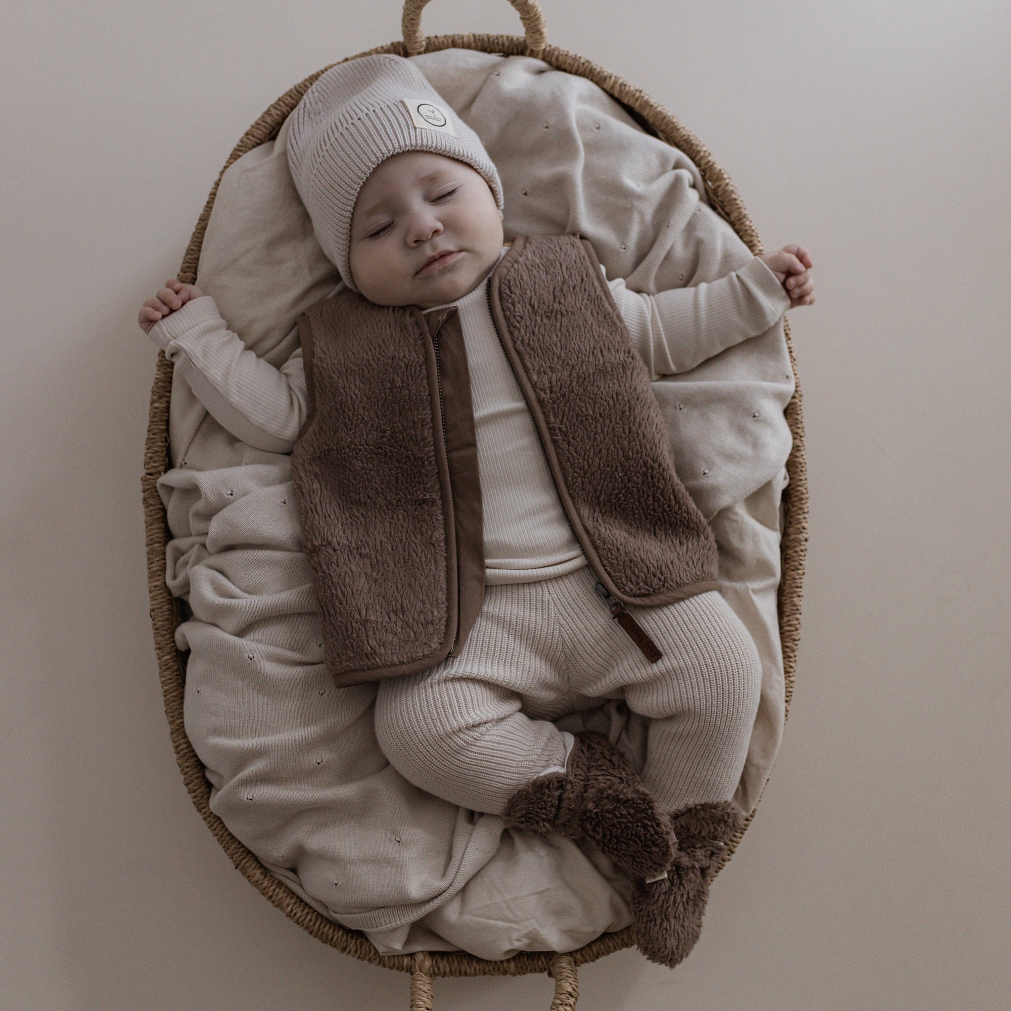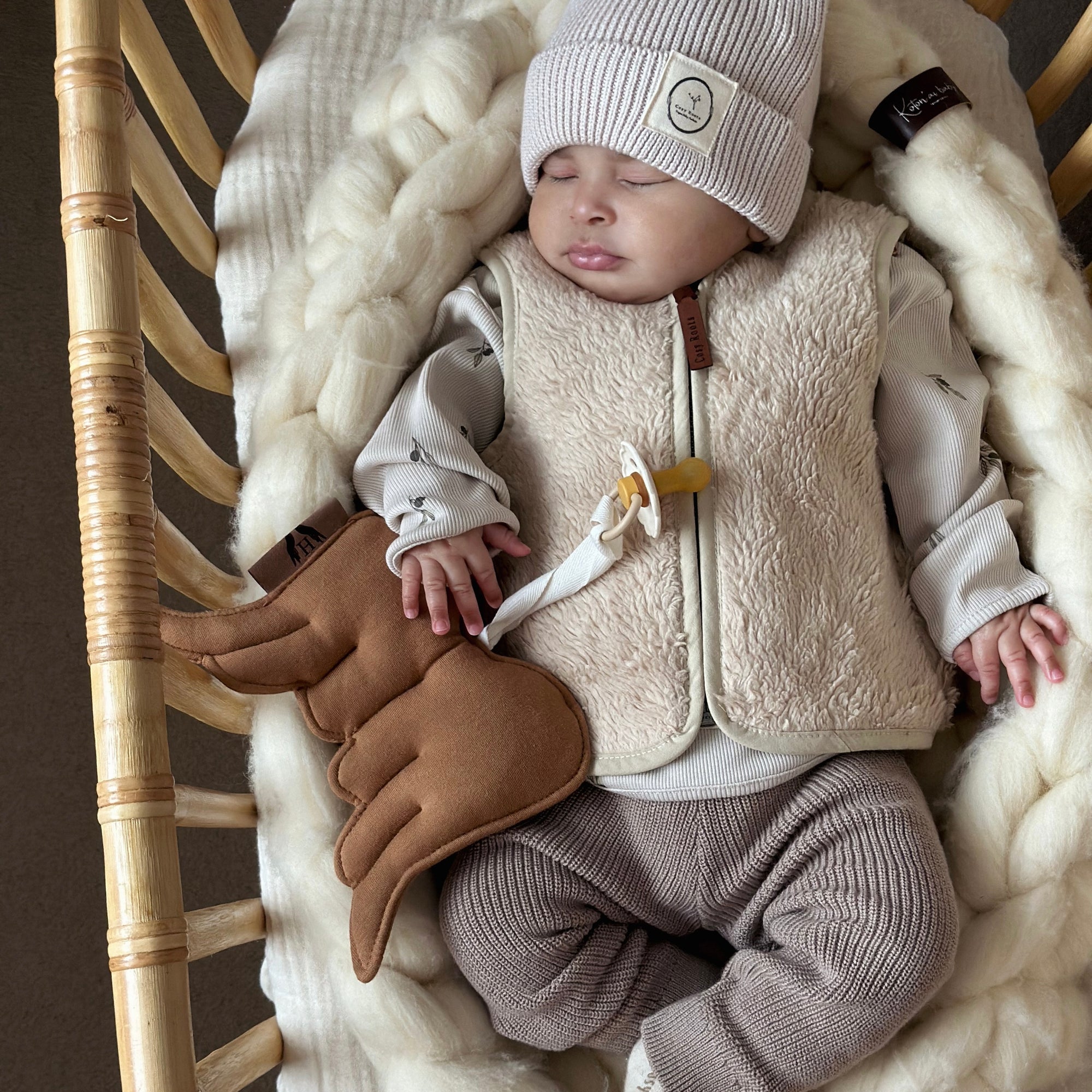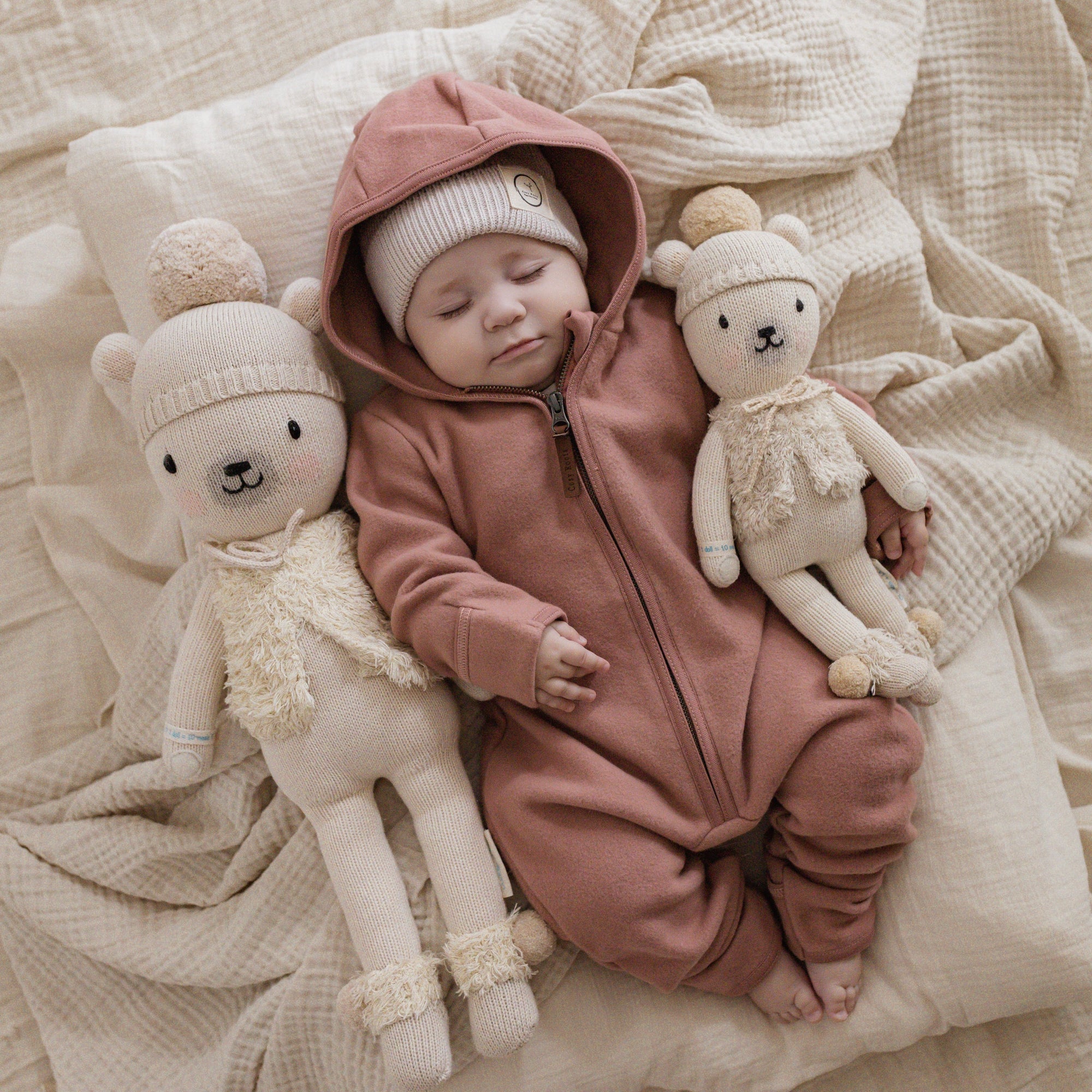 Kuschelig weiche Jacken, Overalls & Westen aus GOTS-zertifizierter Bio Baumwolle in unseren wunderschönen Melange Tönen und dem kuscheligsten Bio Teddy Stoff. Natürlich mit hinterlegtem Zipper und Kinnschutz versehen sowie Umschlagbündchen an Händen und Füßen (bei den Overalls und Jacken), um Deinen Liebling warm zu halten.
