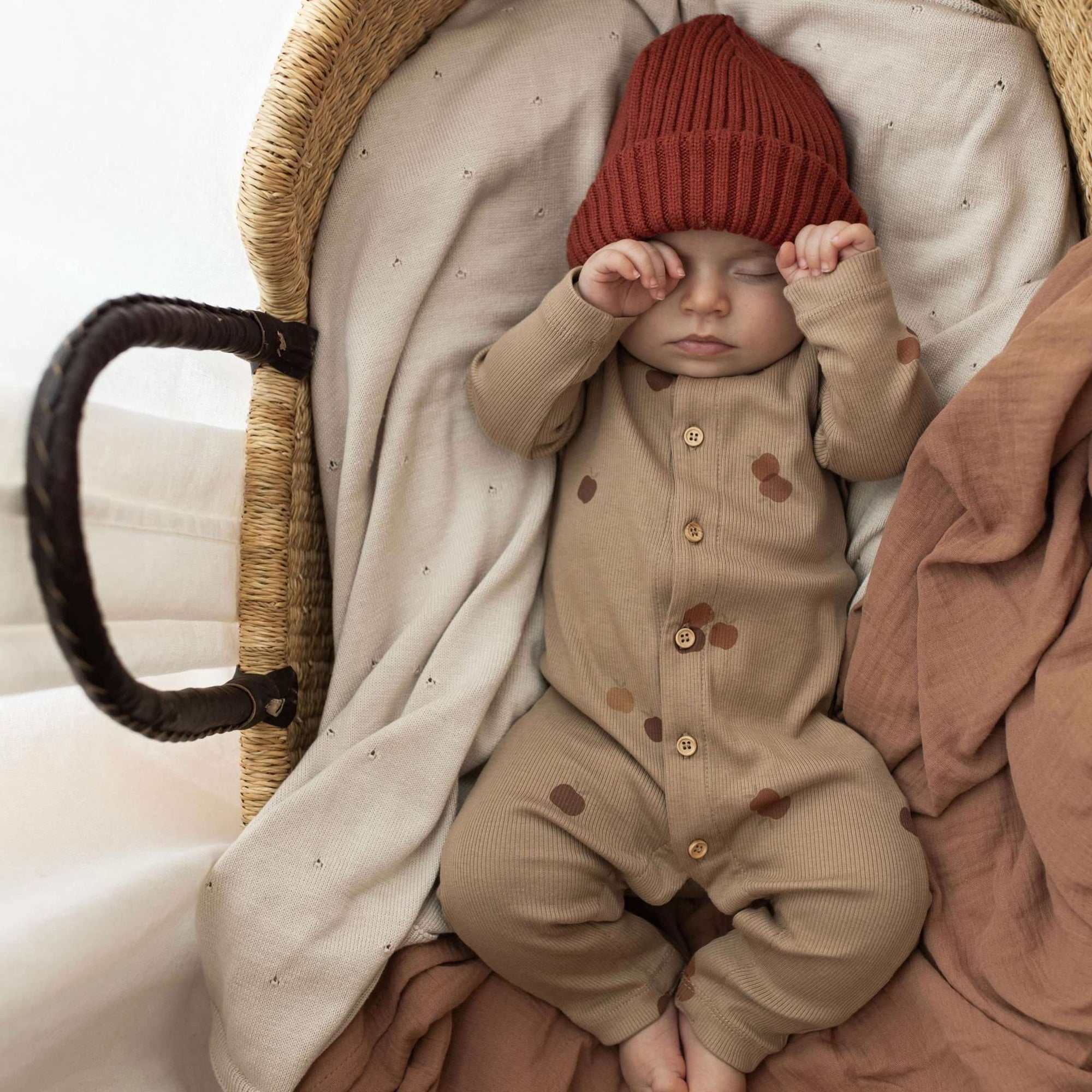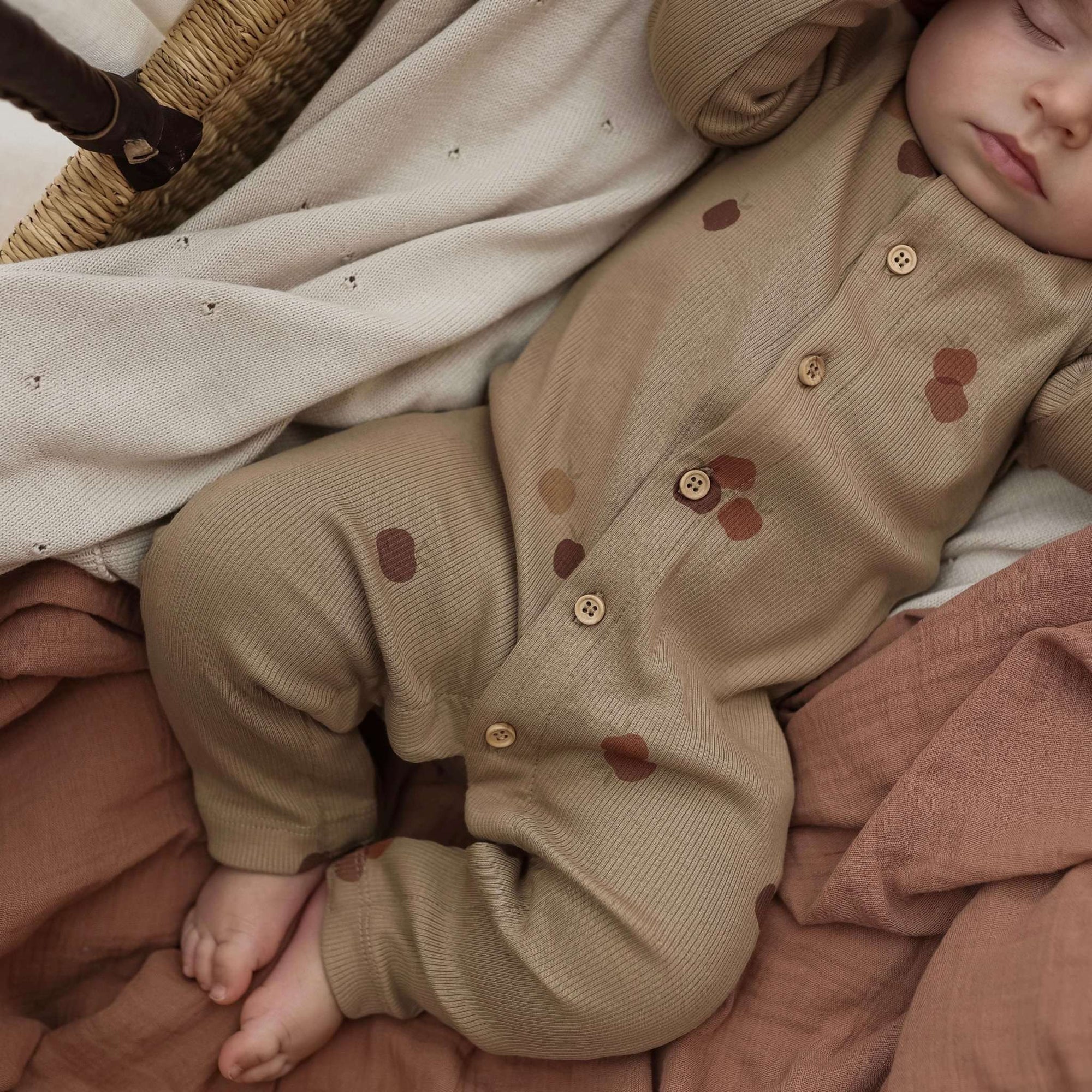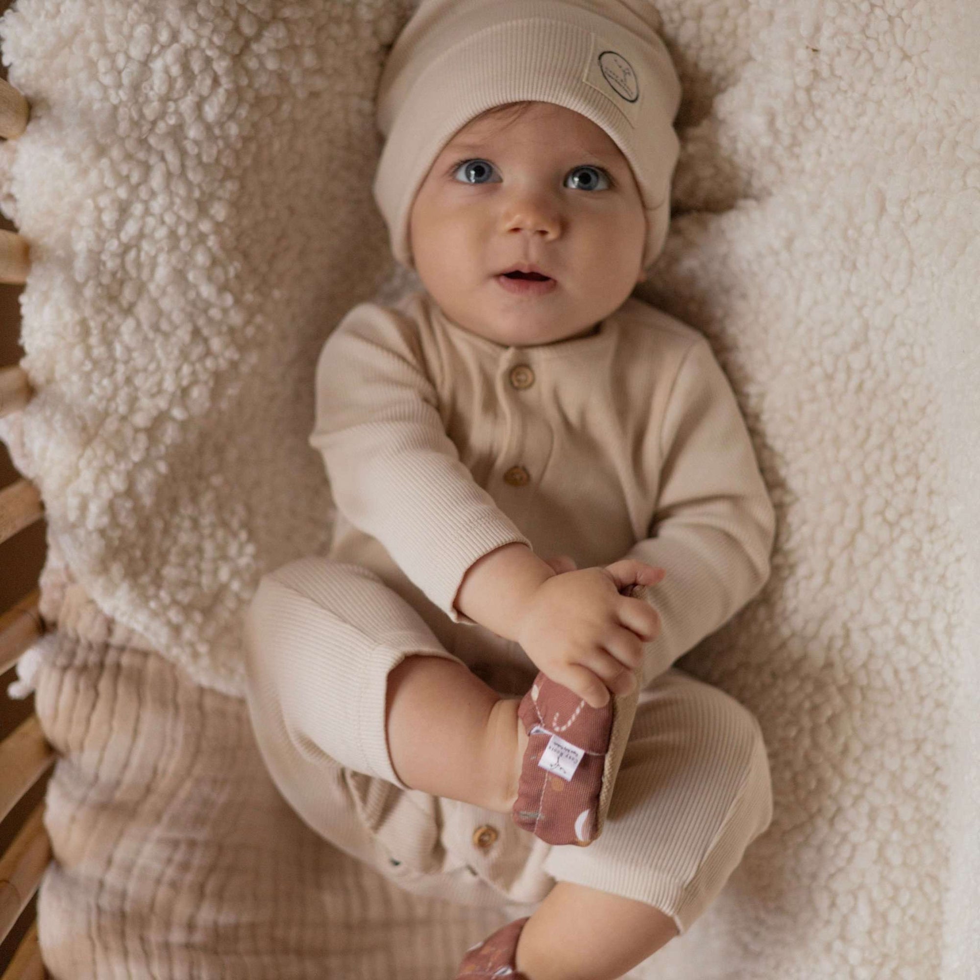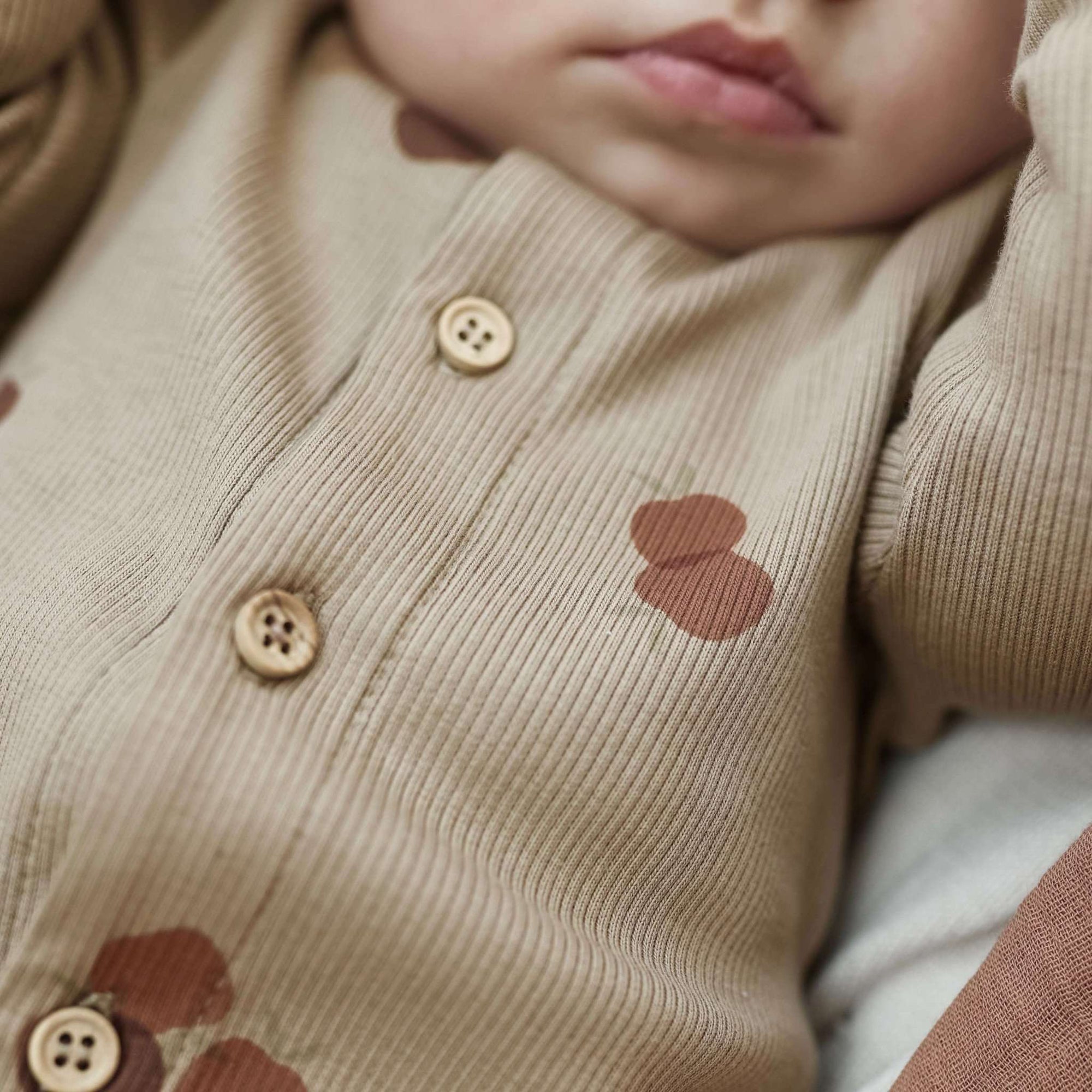 In unserem Online Shop findest Du wunderschöne und dazu kuschelig weiche Strampler aus GOTS-zertifizierter Bio-Baumwolle, in denen sich Dein Baby besonders wohlfühlen wird. Mit nachhaltigen Holzknöpfen an der Brust und sehr praktischen Druckknöpfen an den Beinen - so musst Du deinen Liebling selbst beim Wickeln nicht ausziehen!