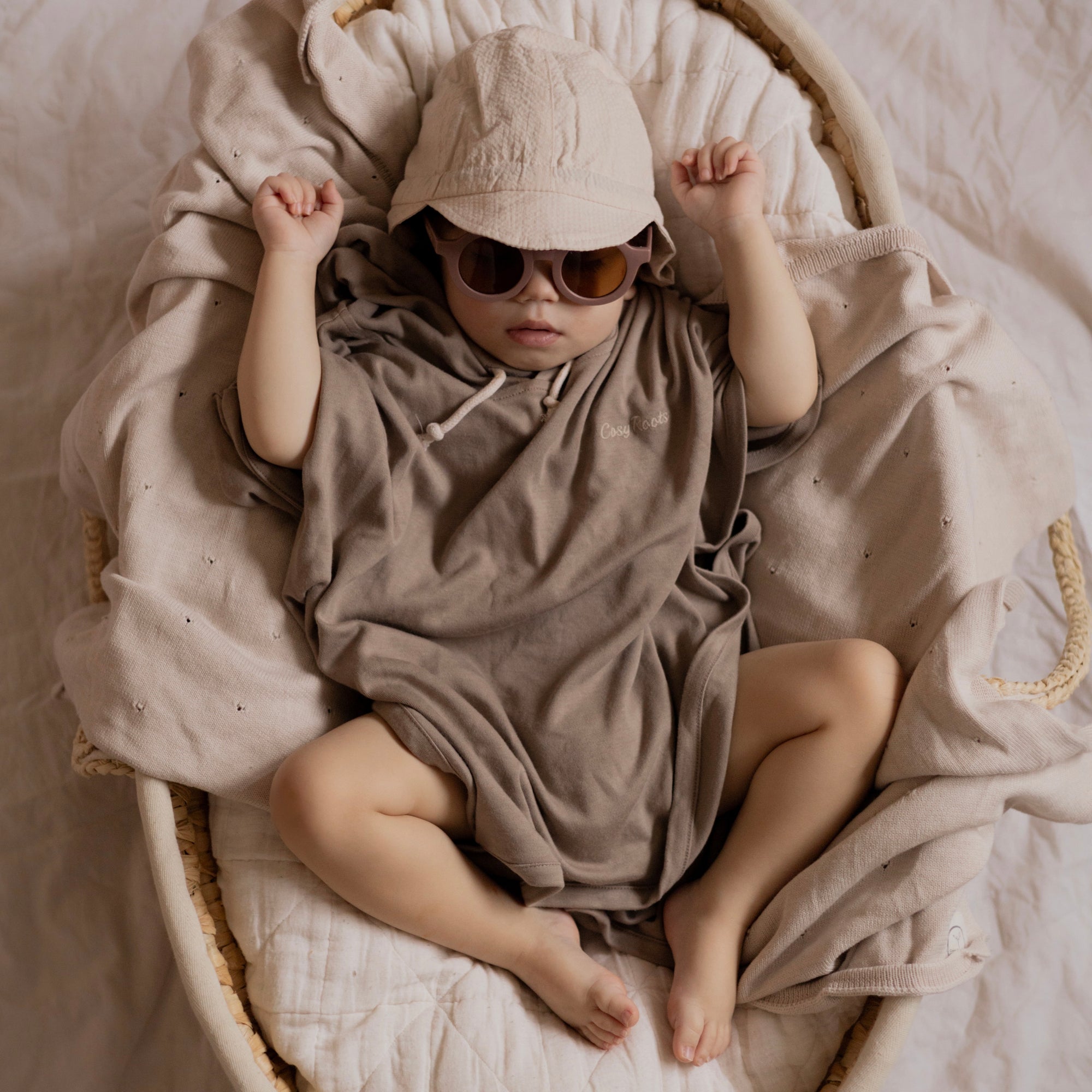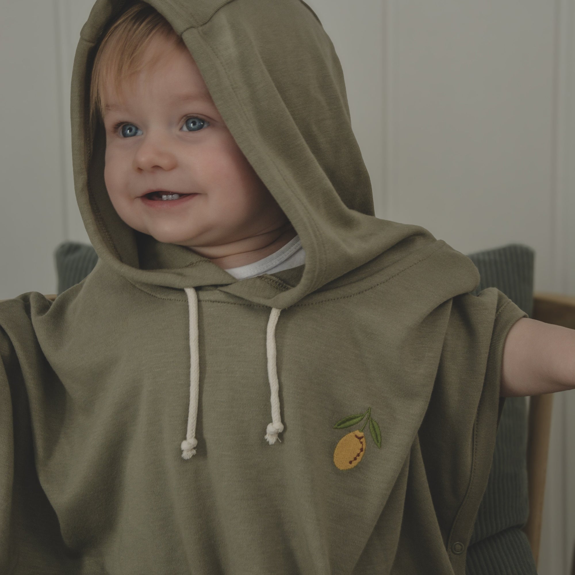 Ganz gleich, ob Schwimmbad, Meer, See oder das Planschbecken im Garten: Unser Organic UV Badeponcho begleitet Dich zuverlässig auf allen Abenteuern! Die kuschelige Mischung aus Bambus und Bio-Baumwolle ist besonders weich, schmiegt sich sanft an Deine Haut und erschwert Dir auch im nassen Zustand kein bisschen das Spielen. Die bequeme Kapuze und angenehme Länge schützen Deinen Kopf, Dein Gesicht und Deinen Körper mit UPF50+ vor Sonneneinstrahlung und bewahren Dich vom Auskühlen, sodass Du Dich ungezwungen zwischen Schatten und Sonne bewegen kannst. Selbstverständlich darf neben der Funktionalität auch das Design nicht zu kurz kommen. Entscheide Dich zwischen den Trendfarben Sand, Caramel und Khaki und werde eins mit der Natur. Je nach Farbe begeistern unsere Ponchos mit einem liebevoll eingestickten Detail – ein schönes Herz, eine süße Zitrone oder ein kunstvoller Schriftzug setzen das i-Tüpfelchen und vervollständigen den coolen Look. Entdecke unsere zauberhafte Auswahl an Baby- und Kinder-Badeponchos und überzeuge Dich von der Qualität unserer Artikel, die mit viel Liebe in kleinen Ateliers gefertigt wurden. Für Dich ist nur das Beste gut genug!