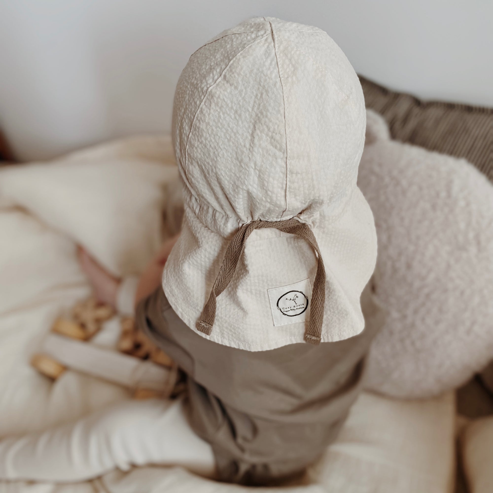 Wunderschöne und leichte Sonnenhüte für Babys & Kinder aus GOTS-zertifizierter Bio Baumwolle mit praktischem Nackenschutz und Kordelzug.