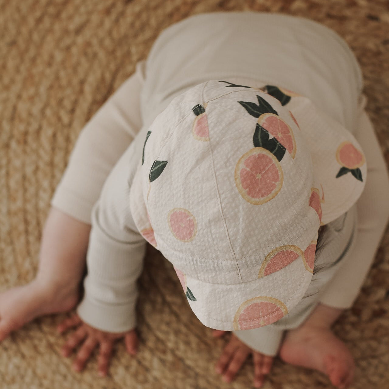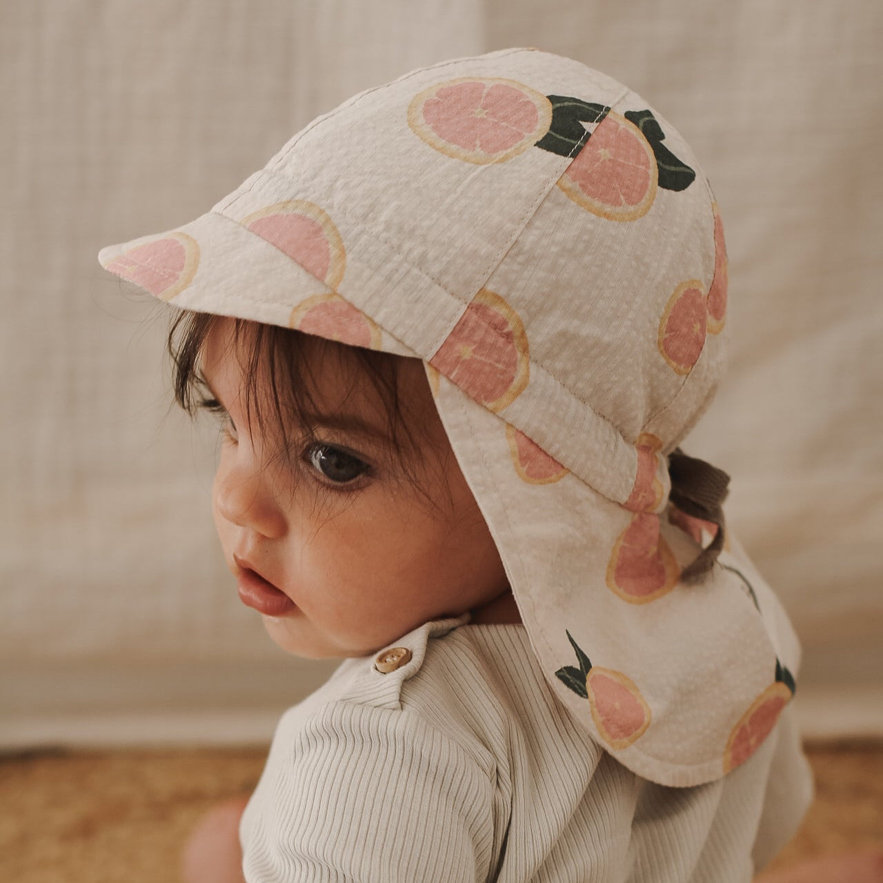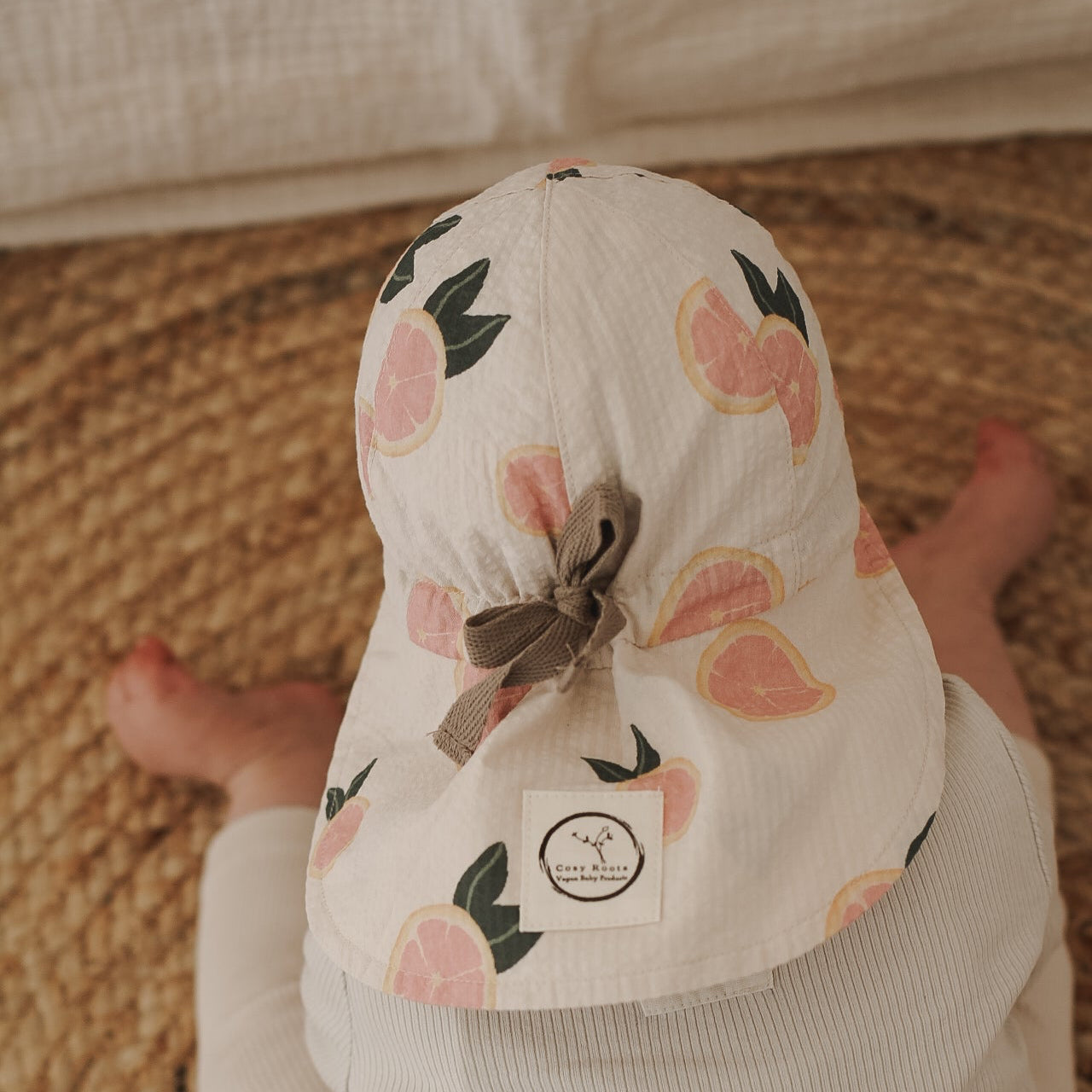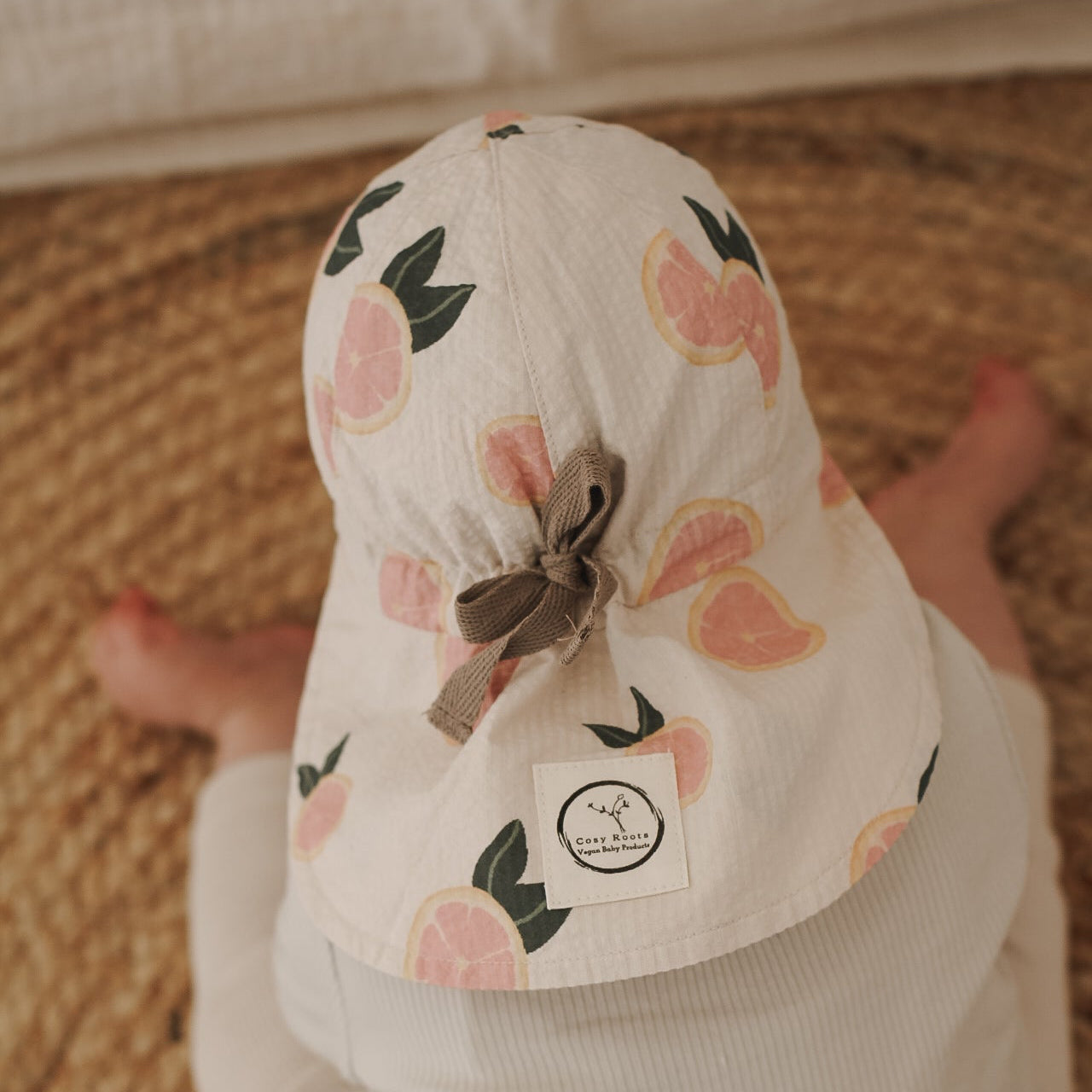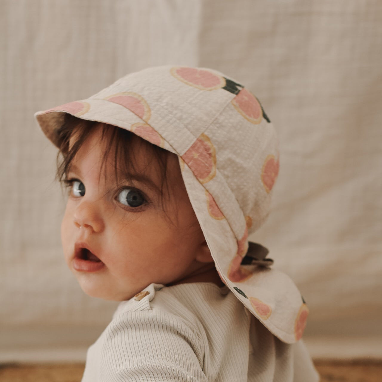 Wunderschöne und leichte Sonnenhüte für Babys & Kinder aus GOTS-zertifizierter Bio Baumwolle mit praktischem Nackenschutz und Kordelzug.