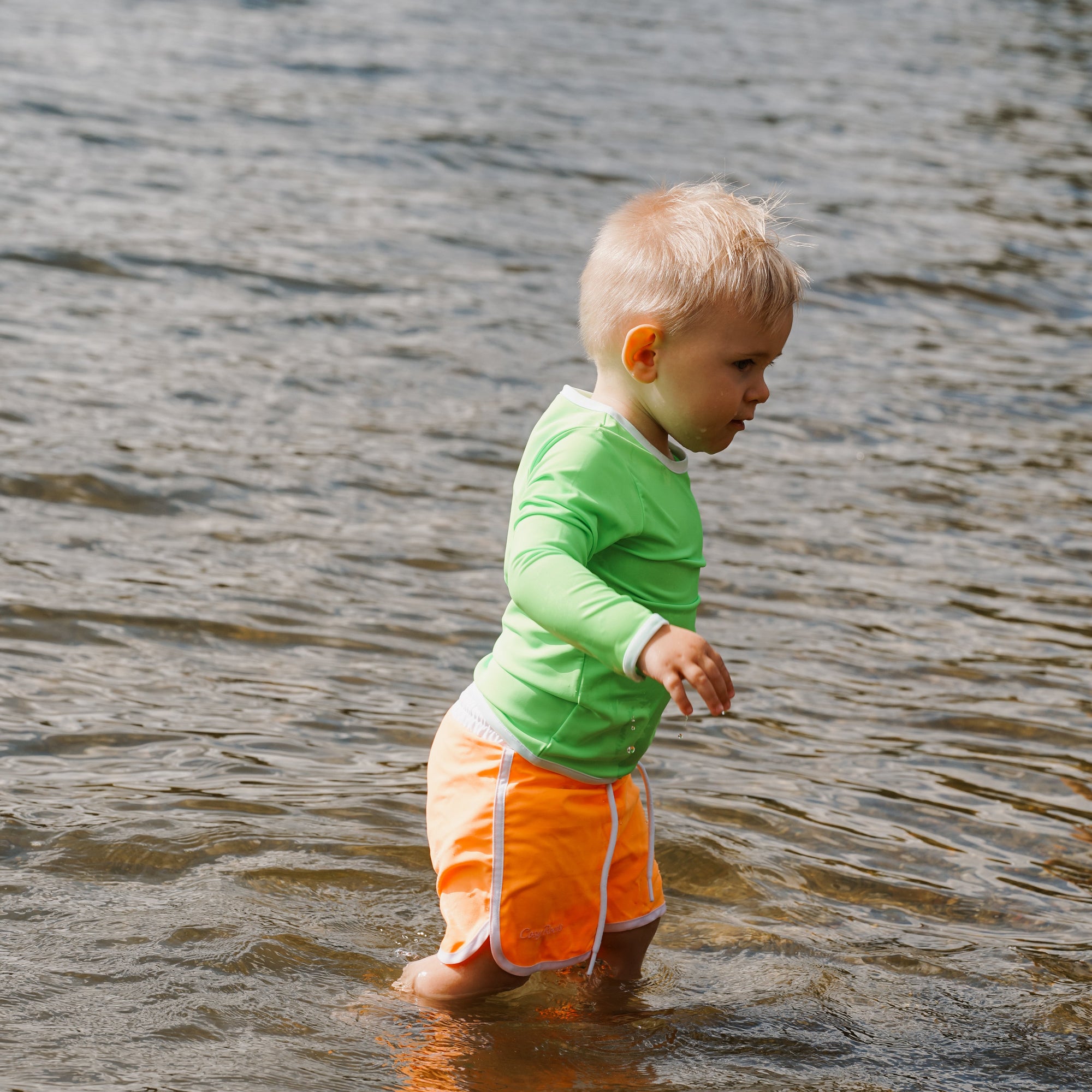 Nachhaltige Schwimmshirts aus recycelten Materialien getestet nach dem strengen UV STANDARD 801 in unseren exklusiven Farben und Designs für den perfekten Badespaß Deines Lieblings.