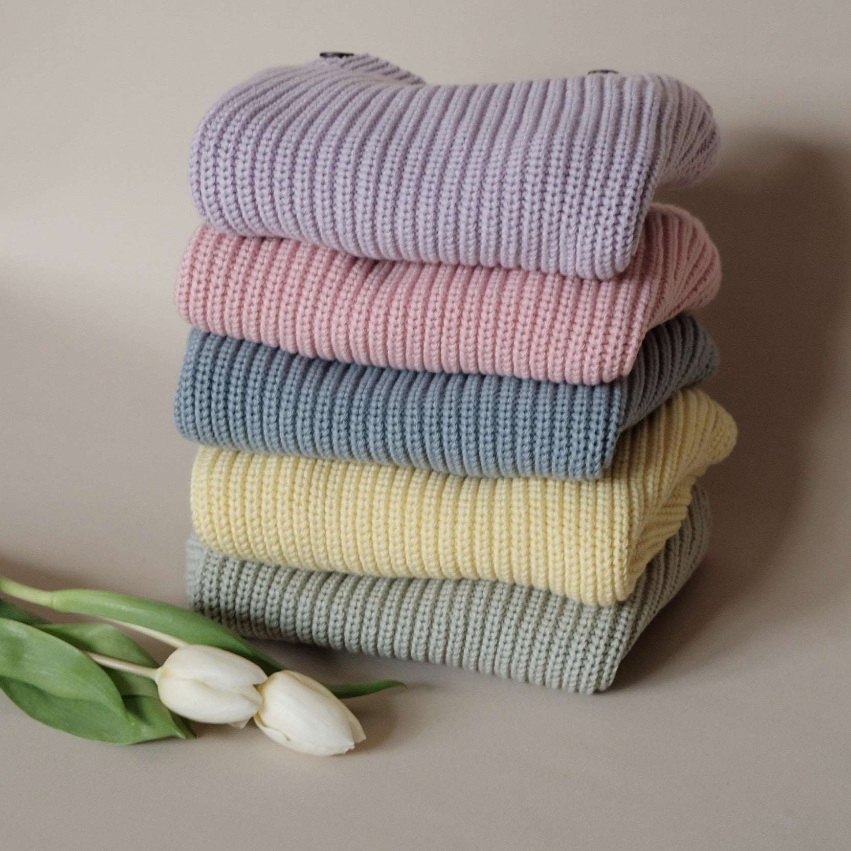 Our knitted Pulis made from GOTS-certified organic cotton in a casual and oversized cut that grows with your child. Create perfect looks by combining the knit sweater with our leggings, beanies, scarves and slippers.