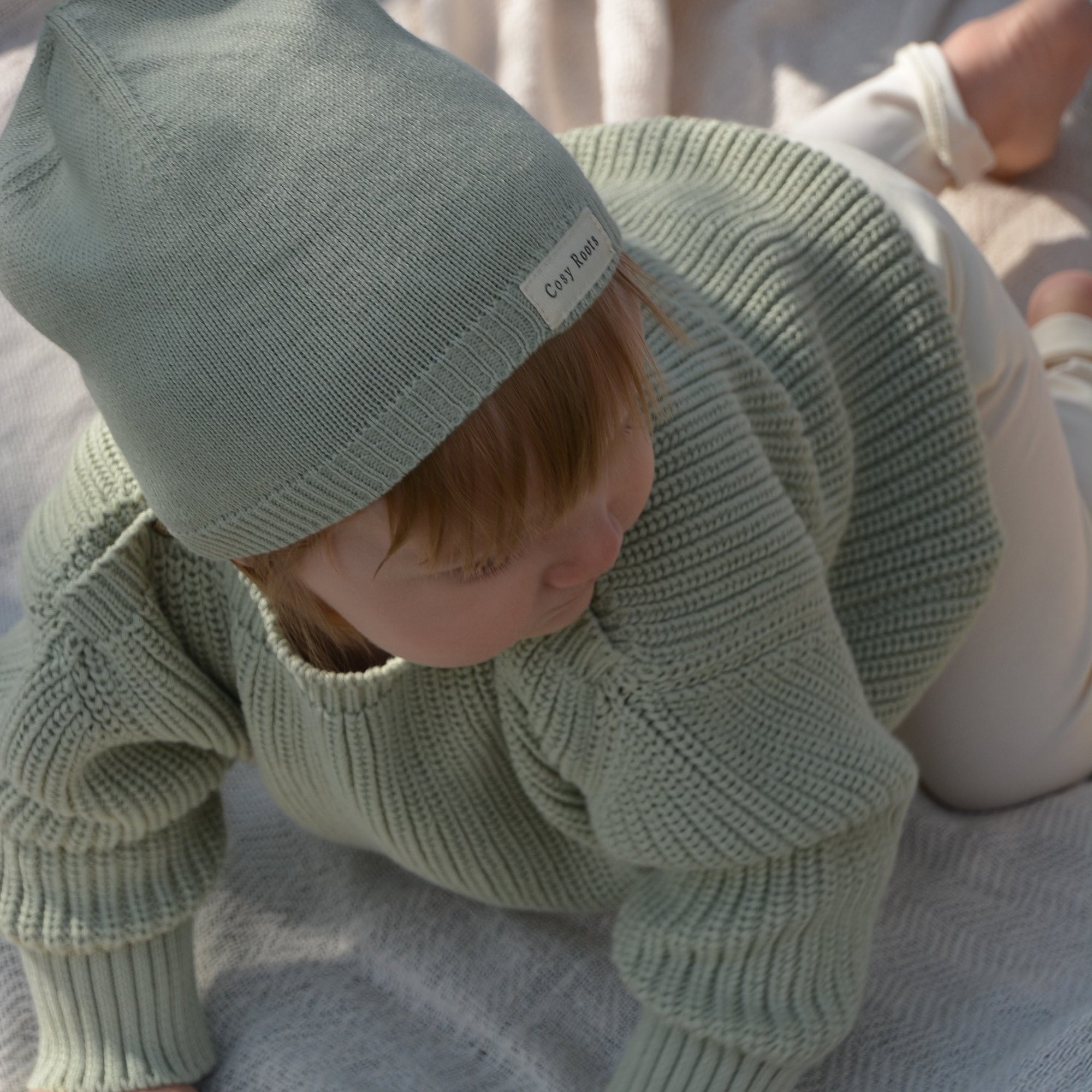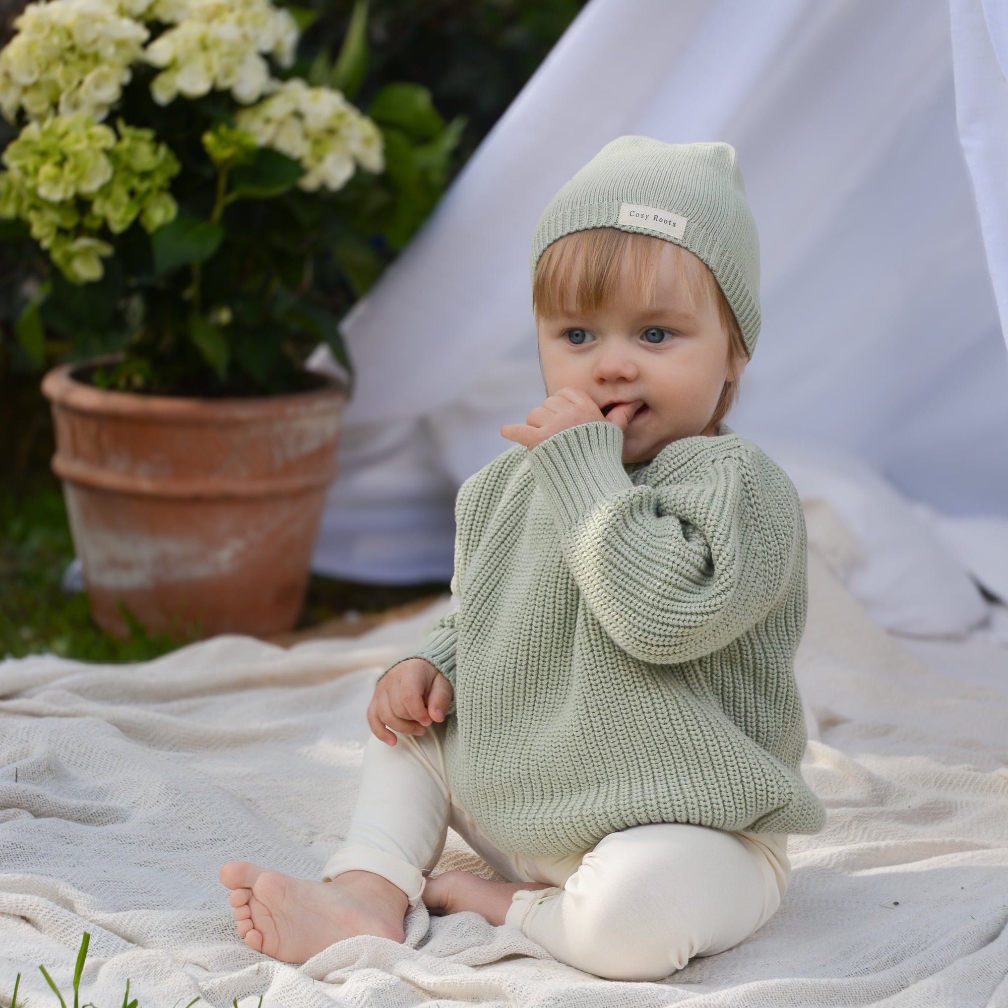 Our knitted Pulis made from GOTS-certified organic cotton in a casual and oversized cut that grows with your child. Create perfect looks by combining the knit sweater with our leggings, beanies, scarves and slippers.